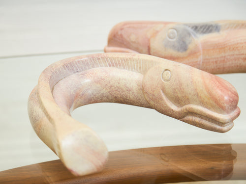 Hand-Carved Soapstone Fish Sculpture – Organic Modern 2 pieces