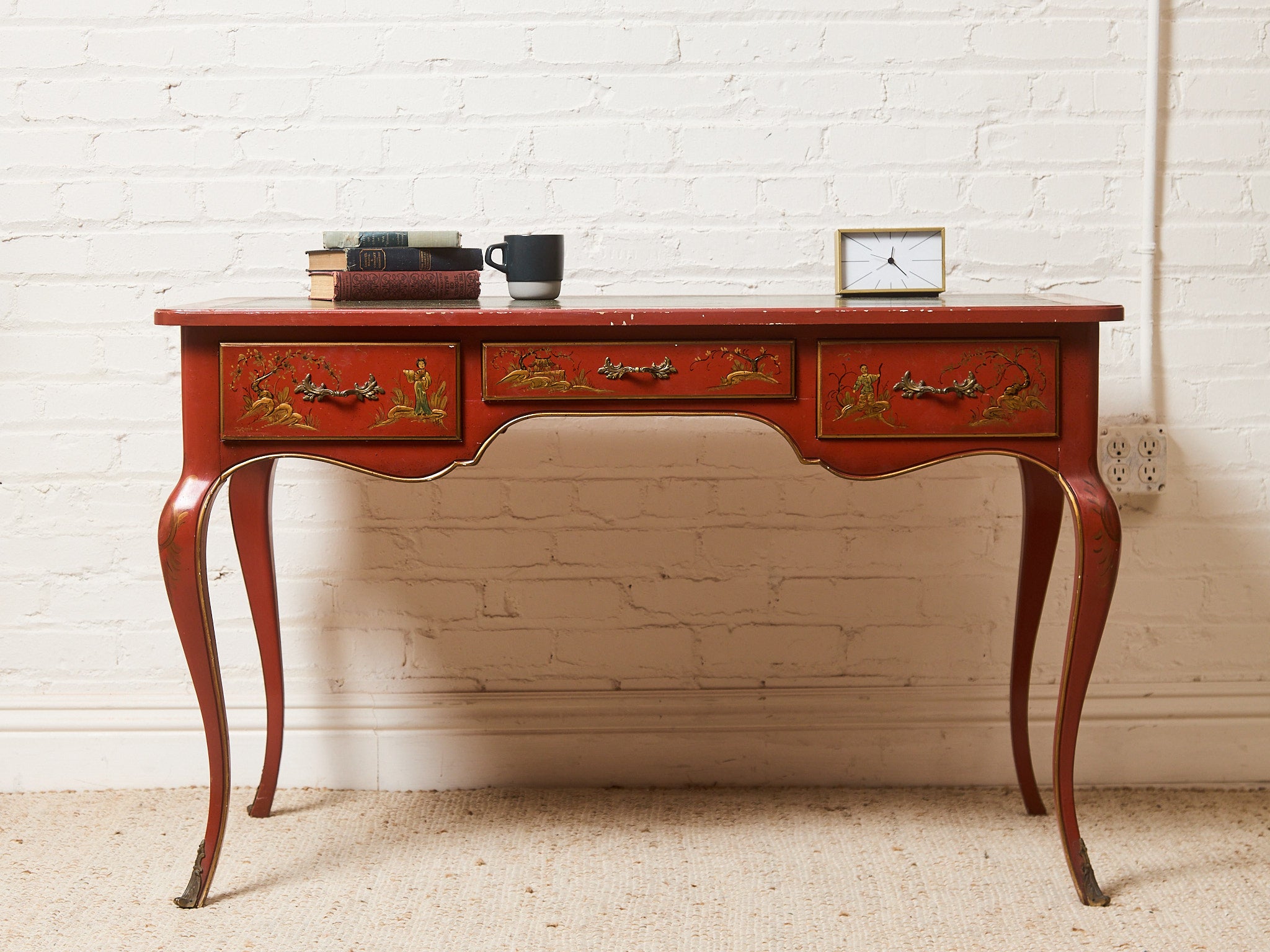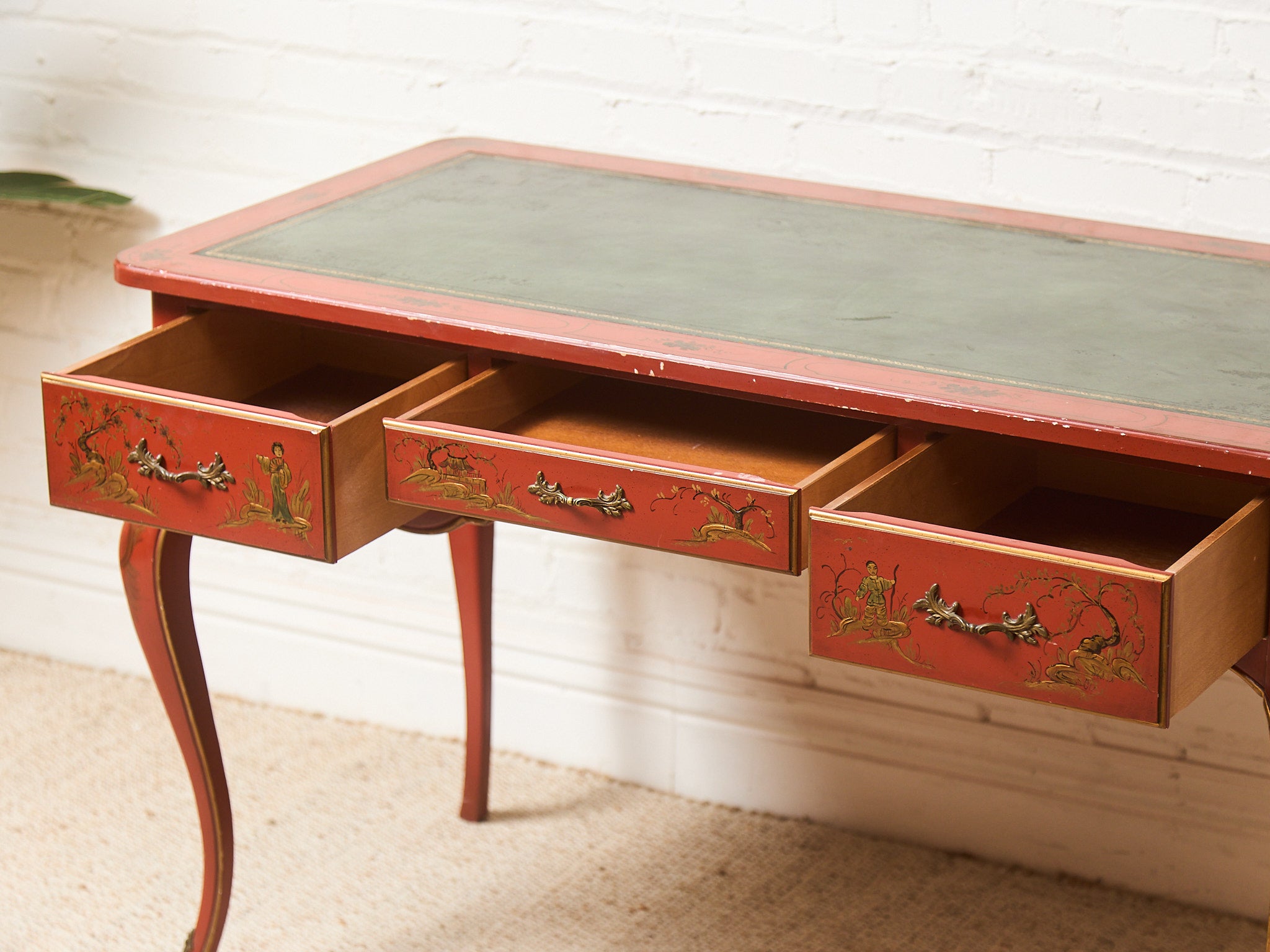 Louis XV Style Chinoiserie Writing Desk by Baker with Matching Chair