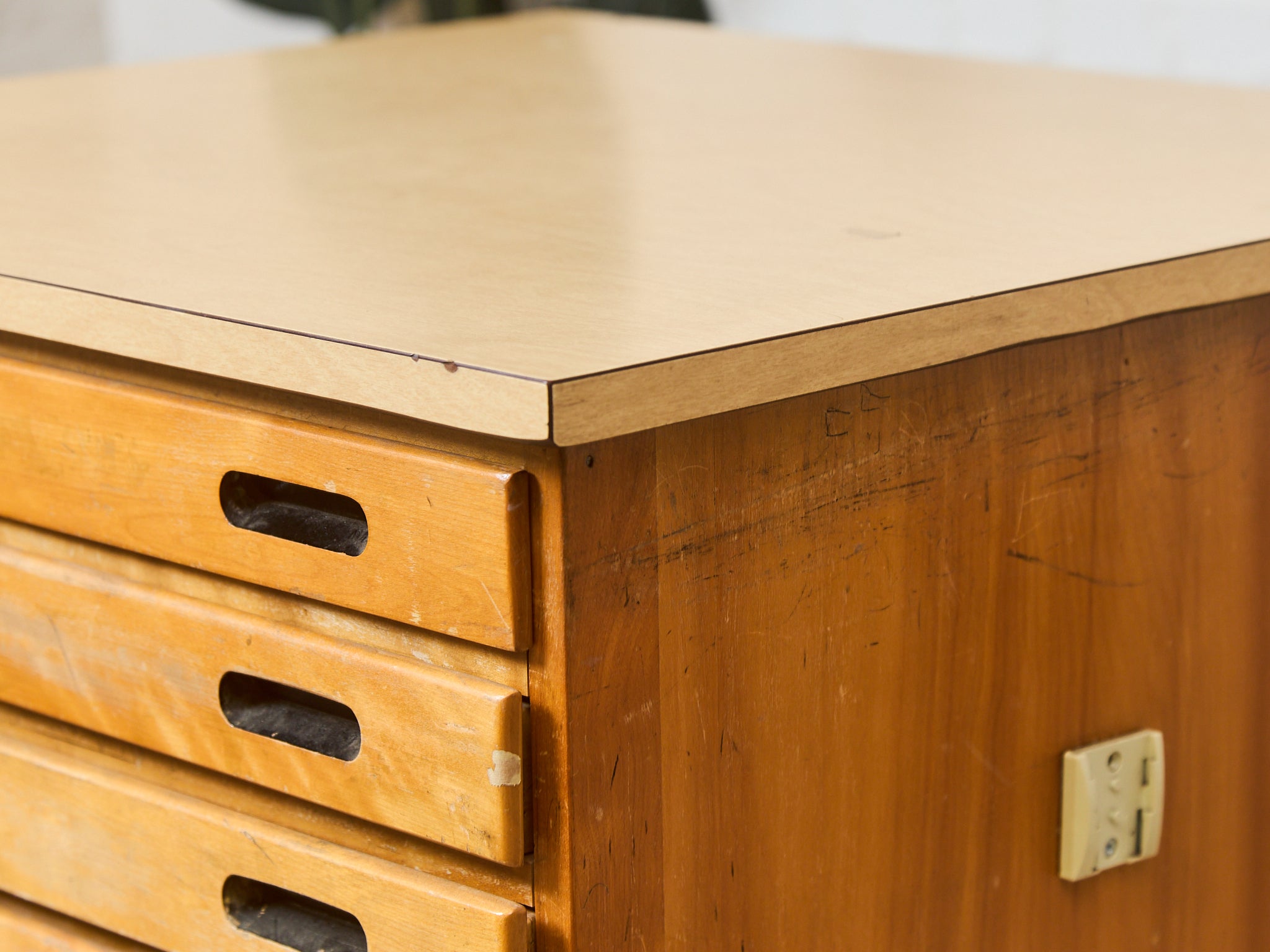 Vintage Distressed Industrial Wood Primitive School House Artist Flat Files Cabinet #3
