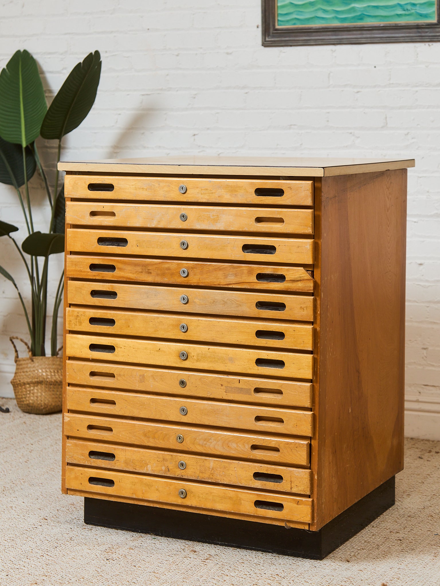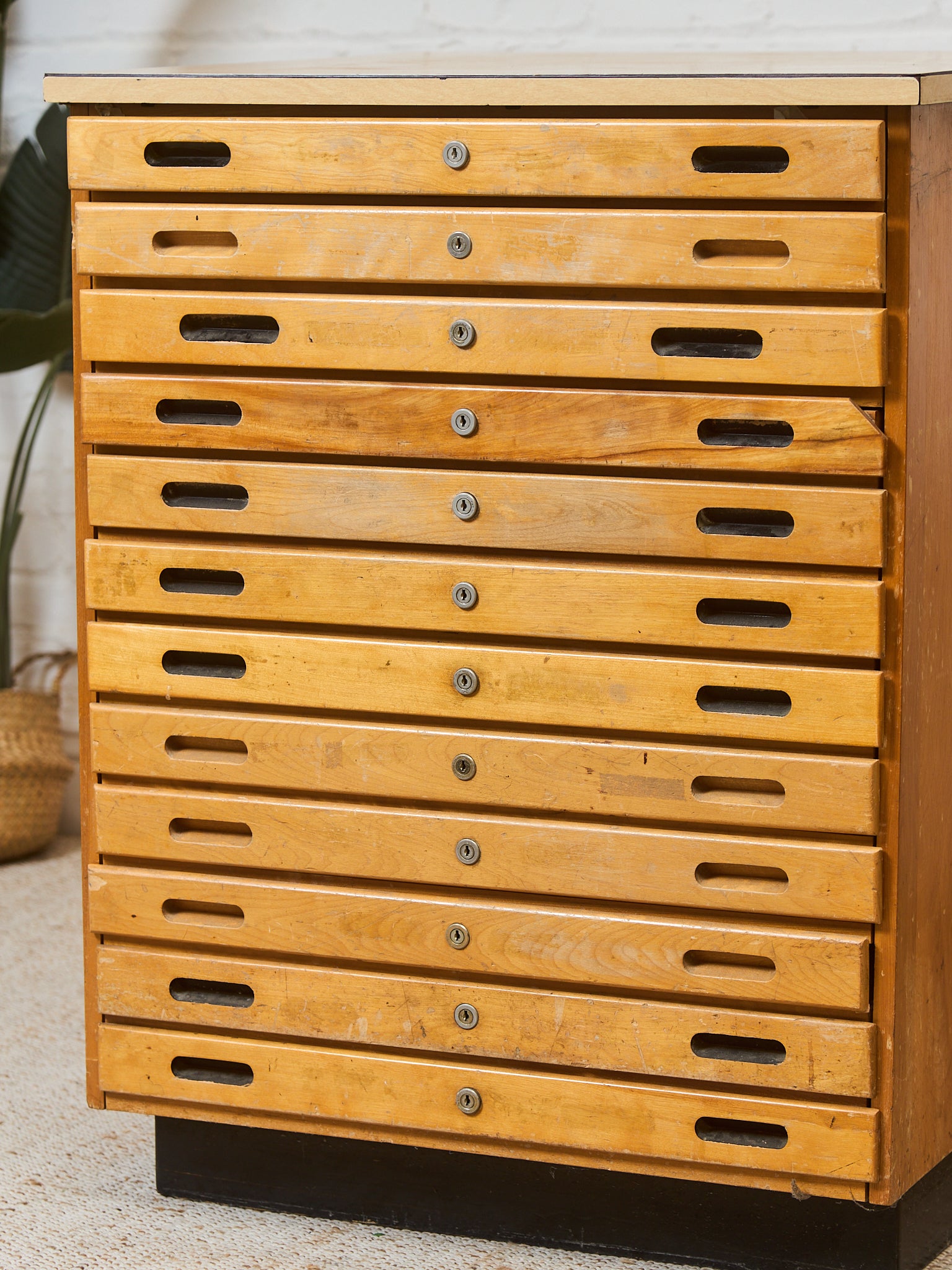 Vintage Distressed Industrial Wood Primitive School House Artist Flat Files Cabinet #4