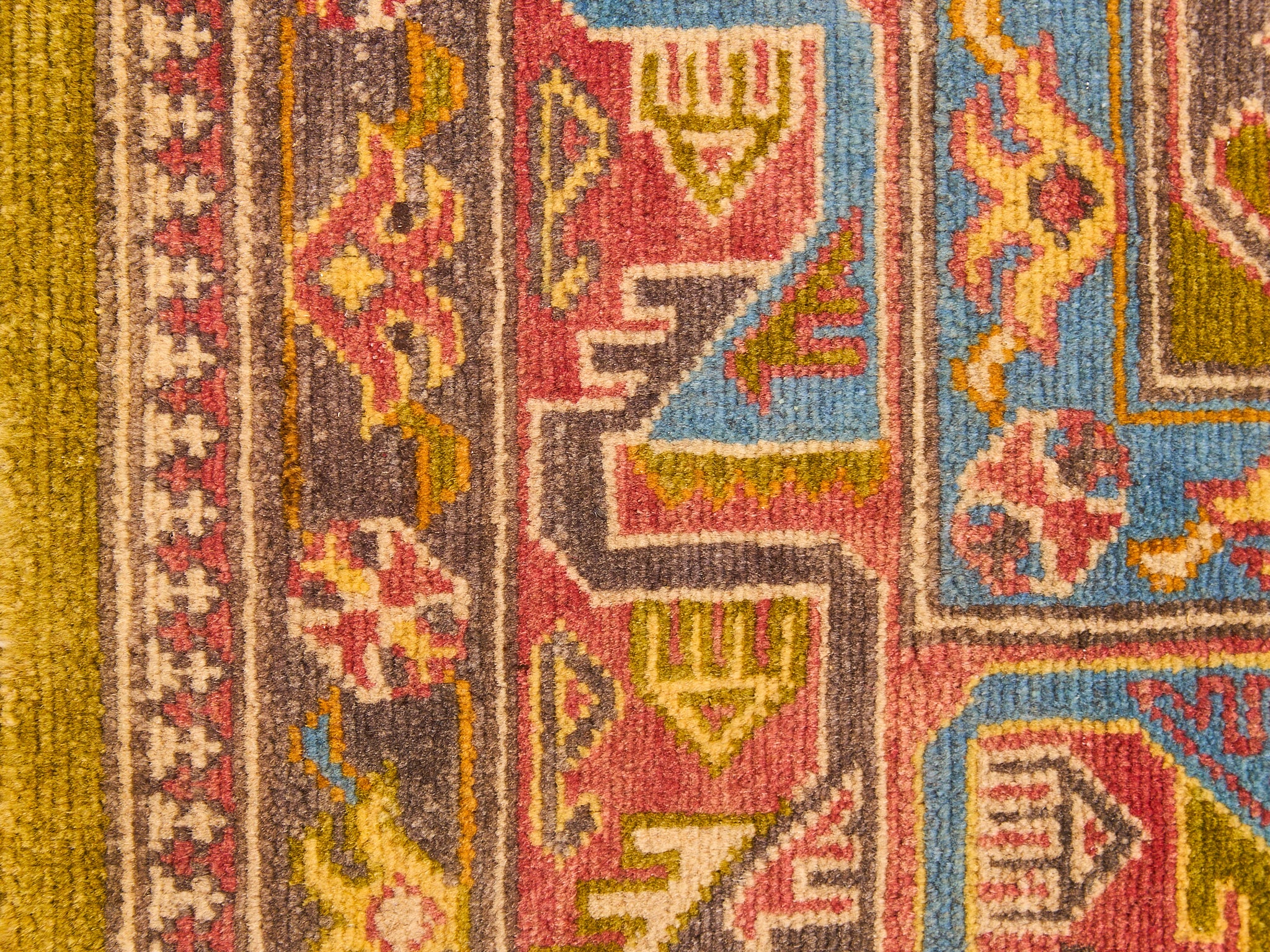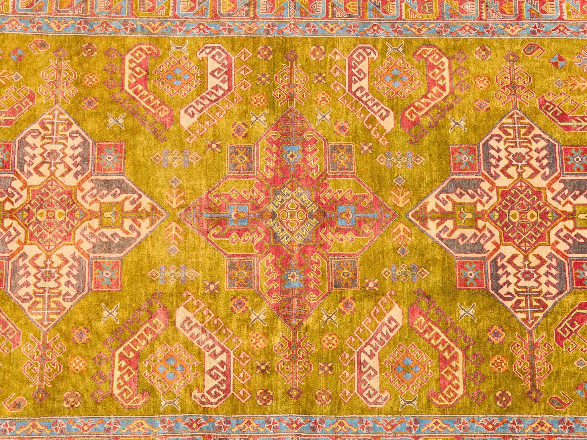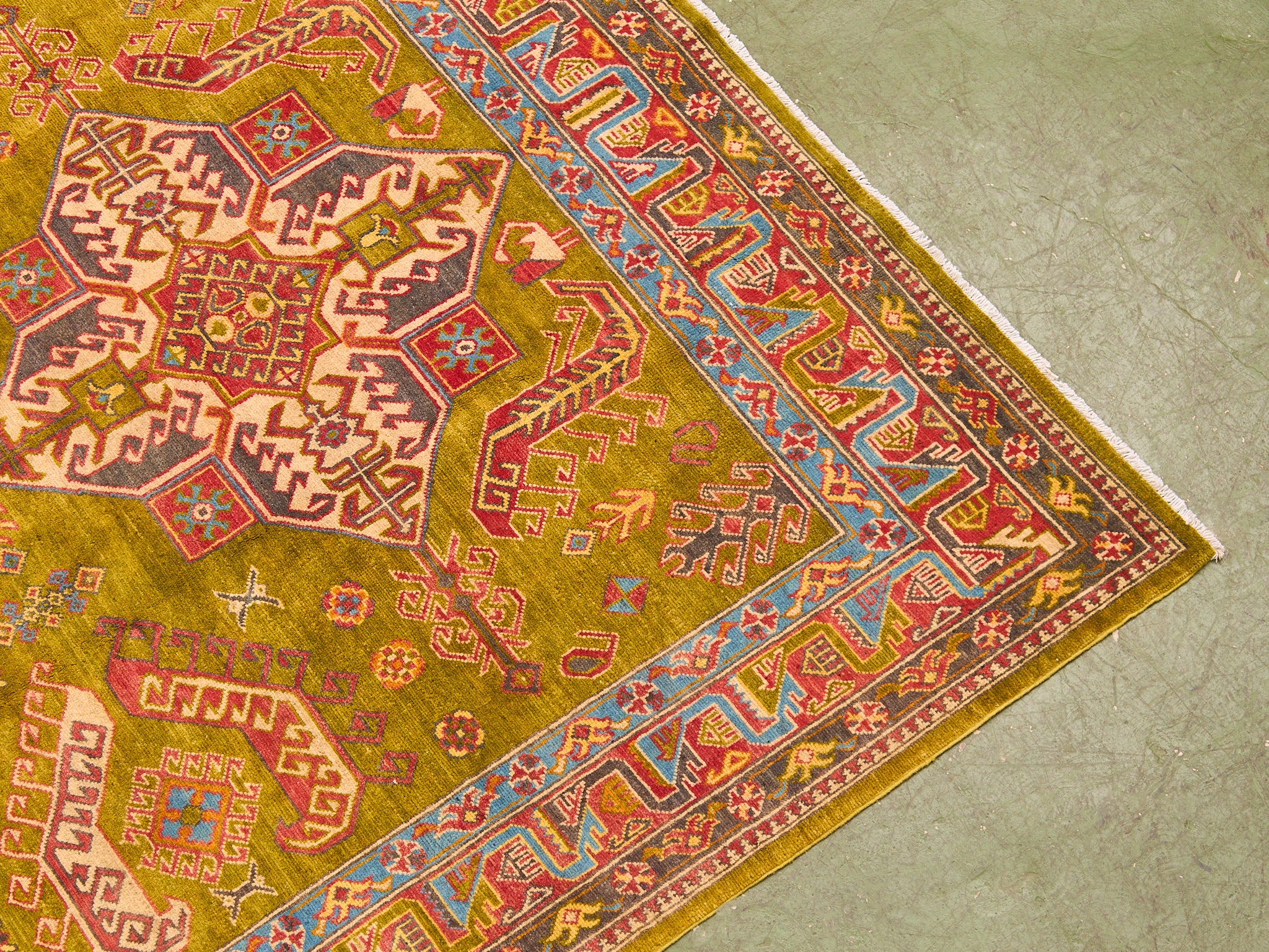 Antique Kazak Hand-loomed Rug Olive Green