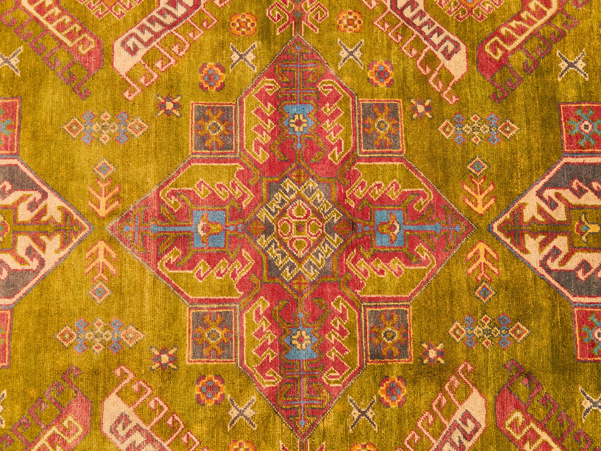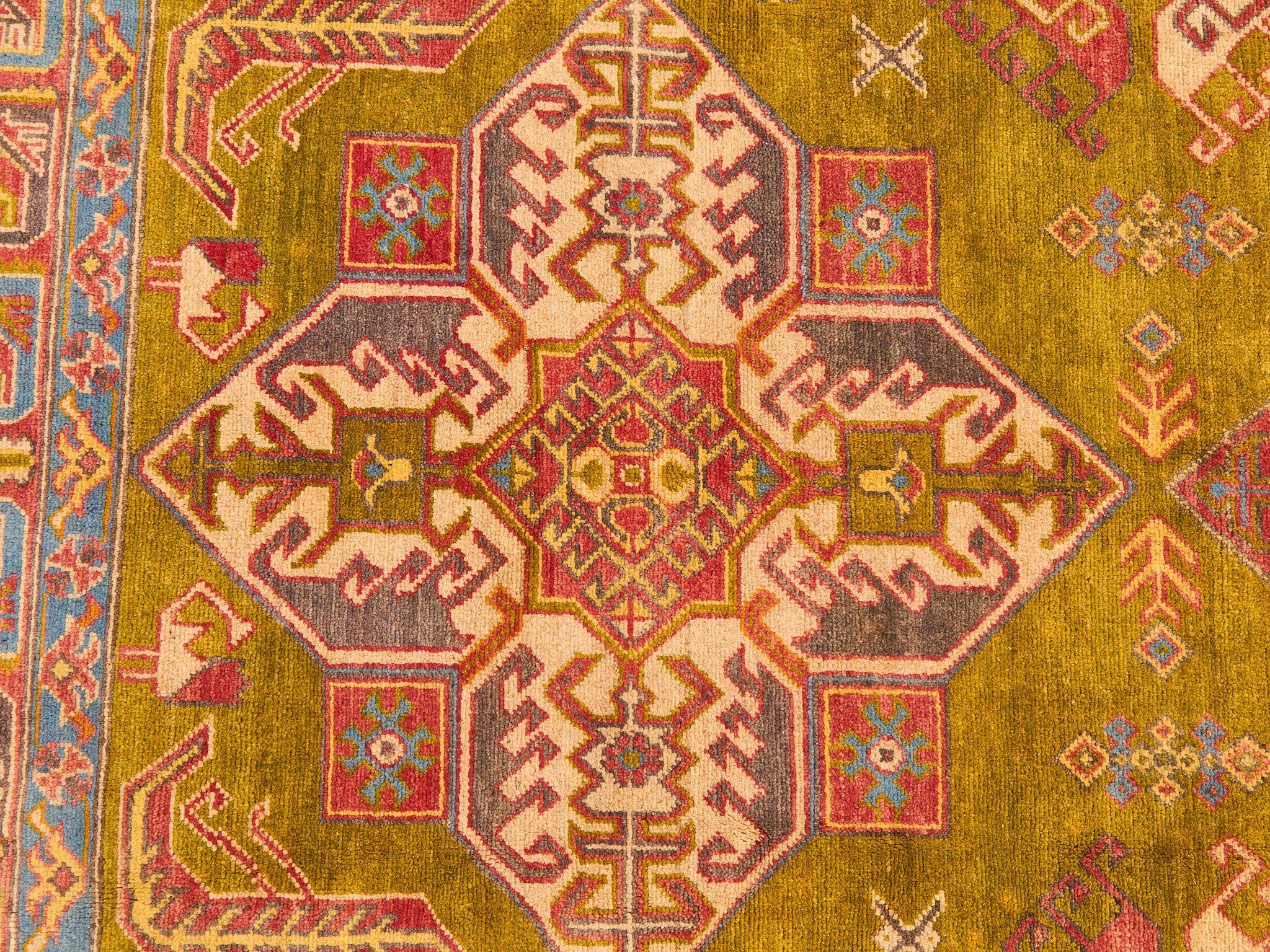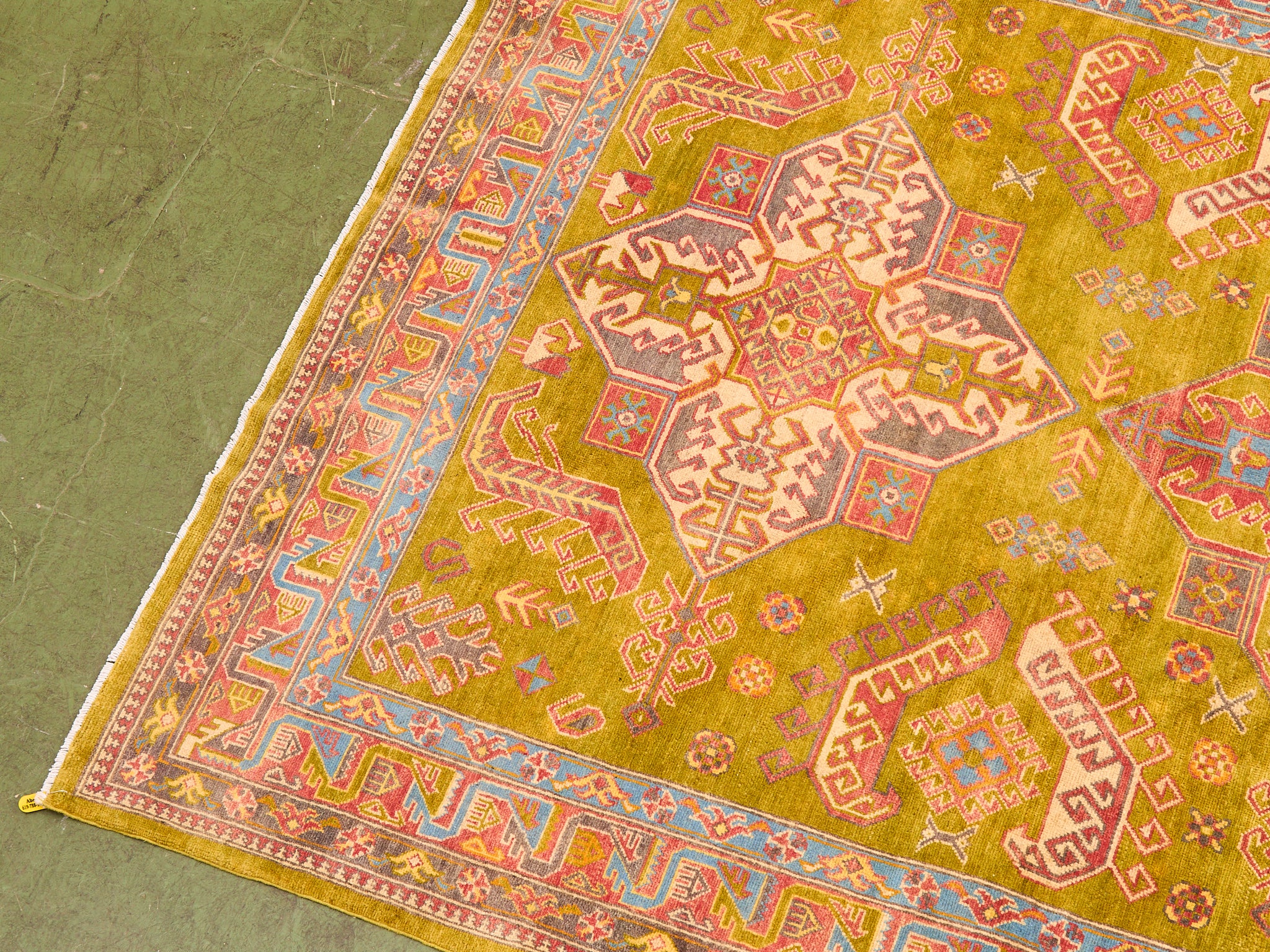 Antique Kazak Hand-loomed Rug Olive Green