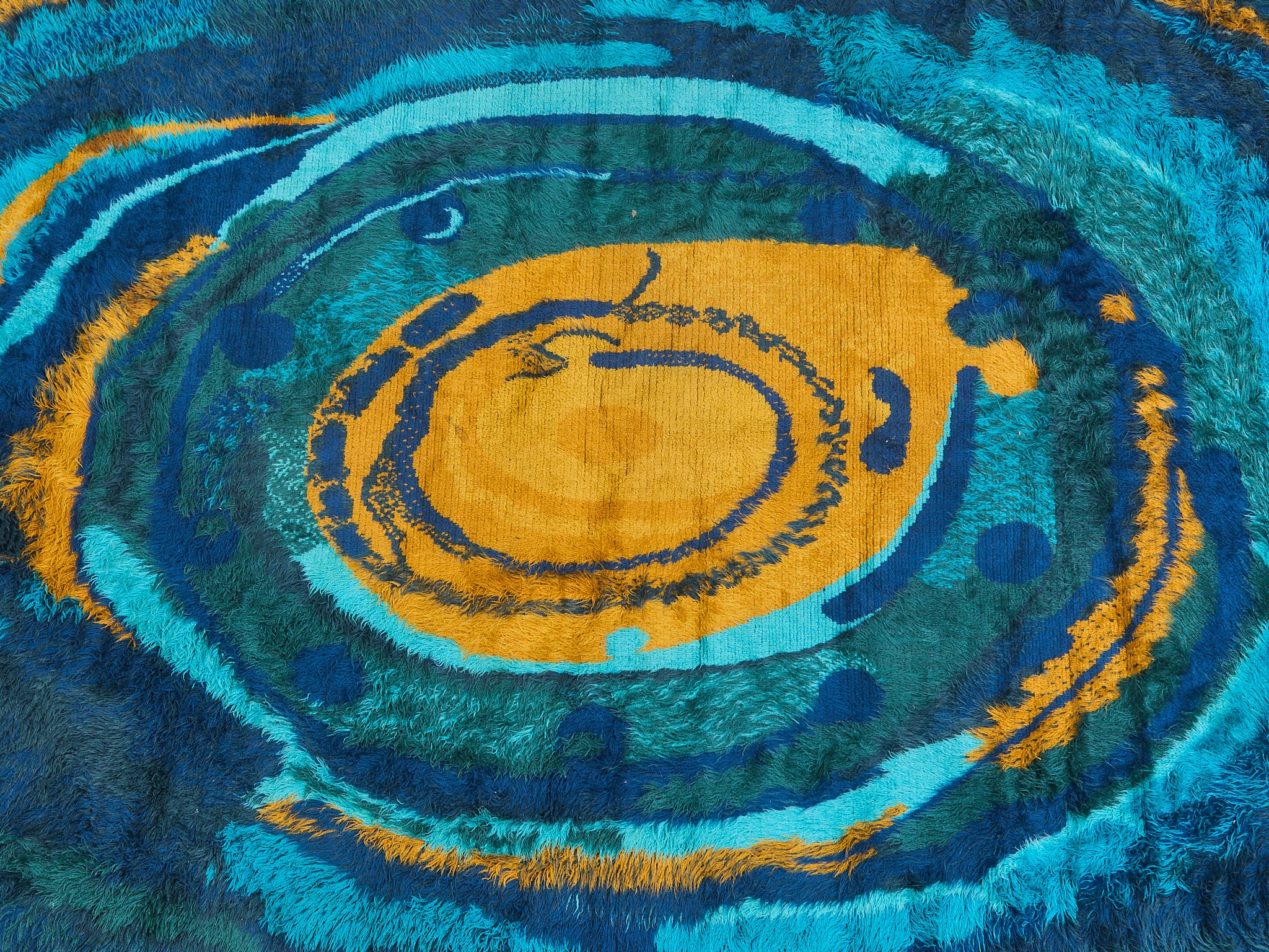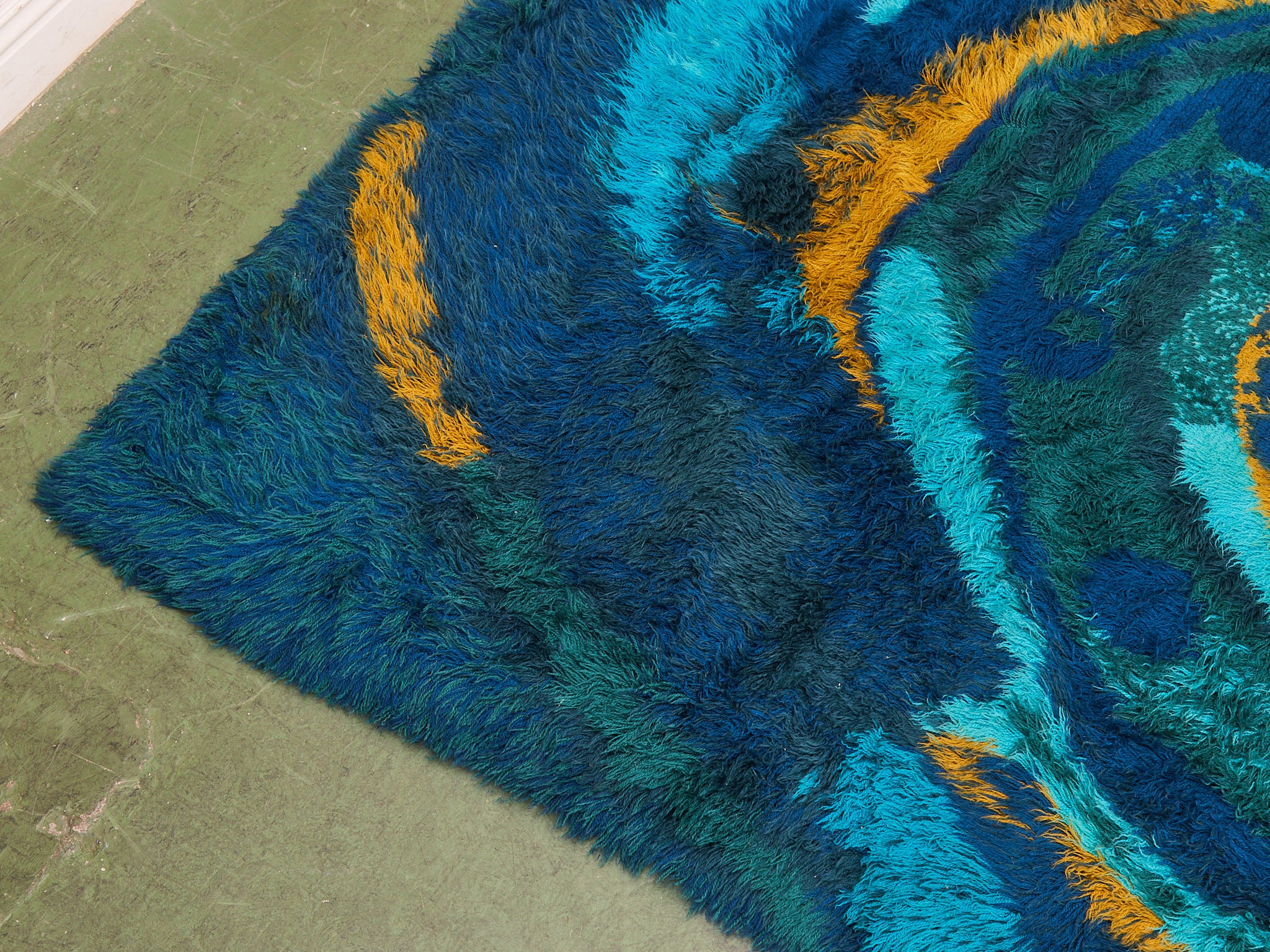 Vintage Teal Authentic Rya Rug Extra Large Mid-Century