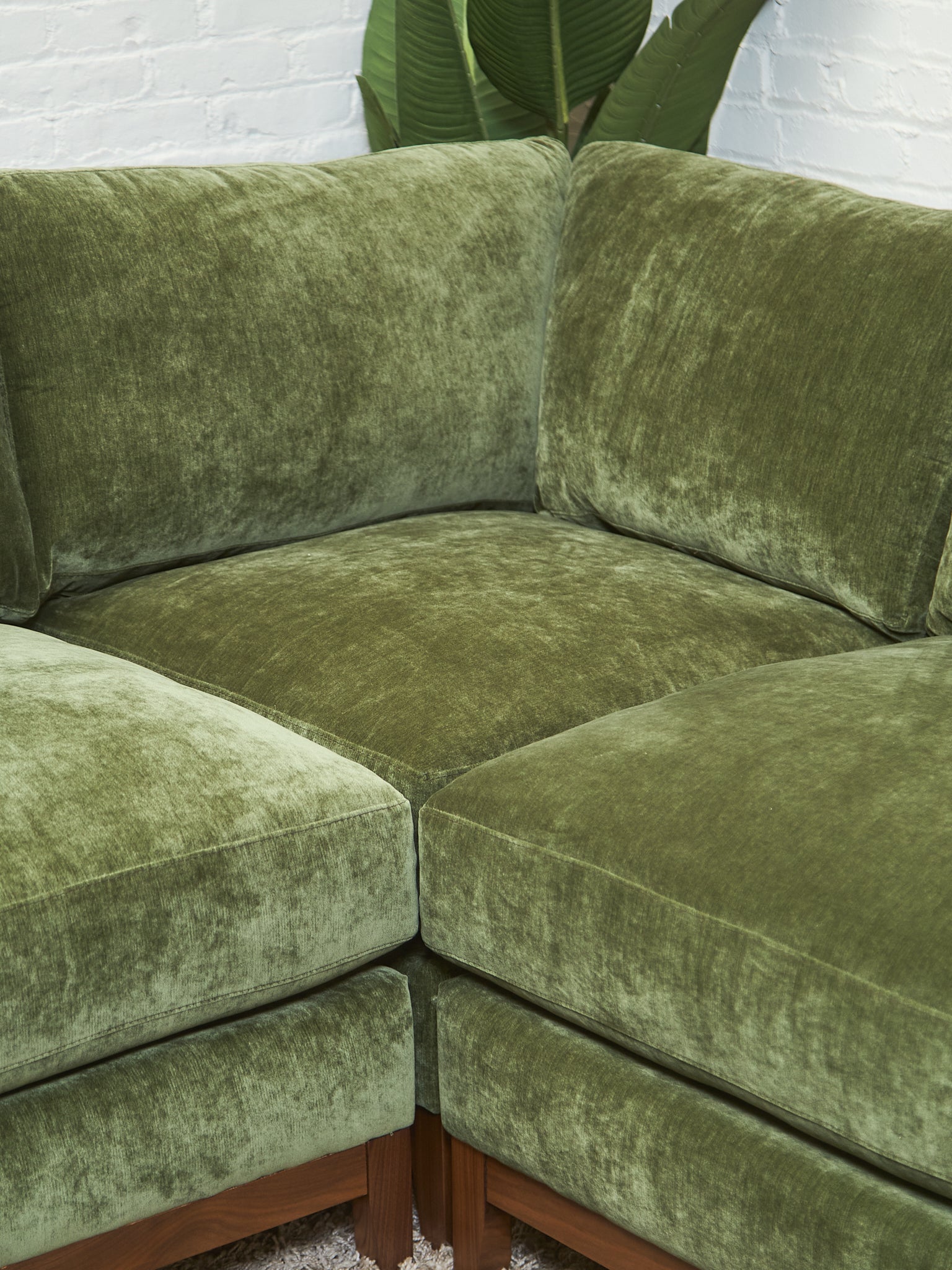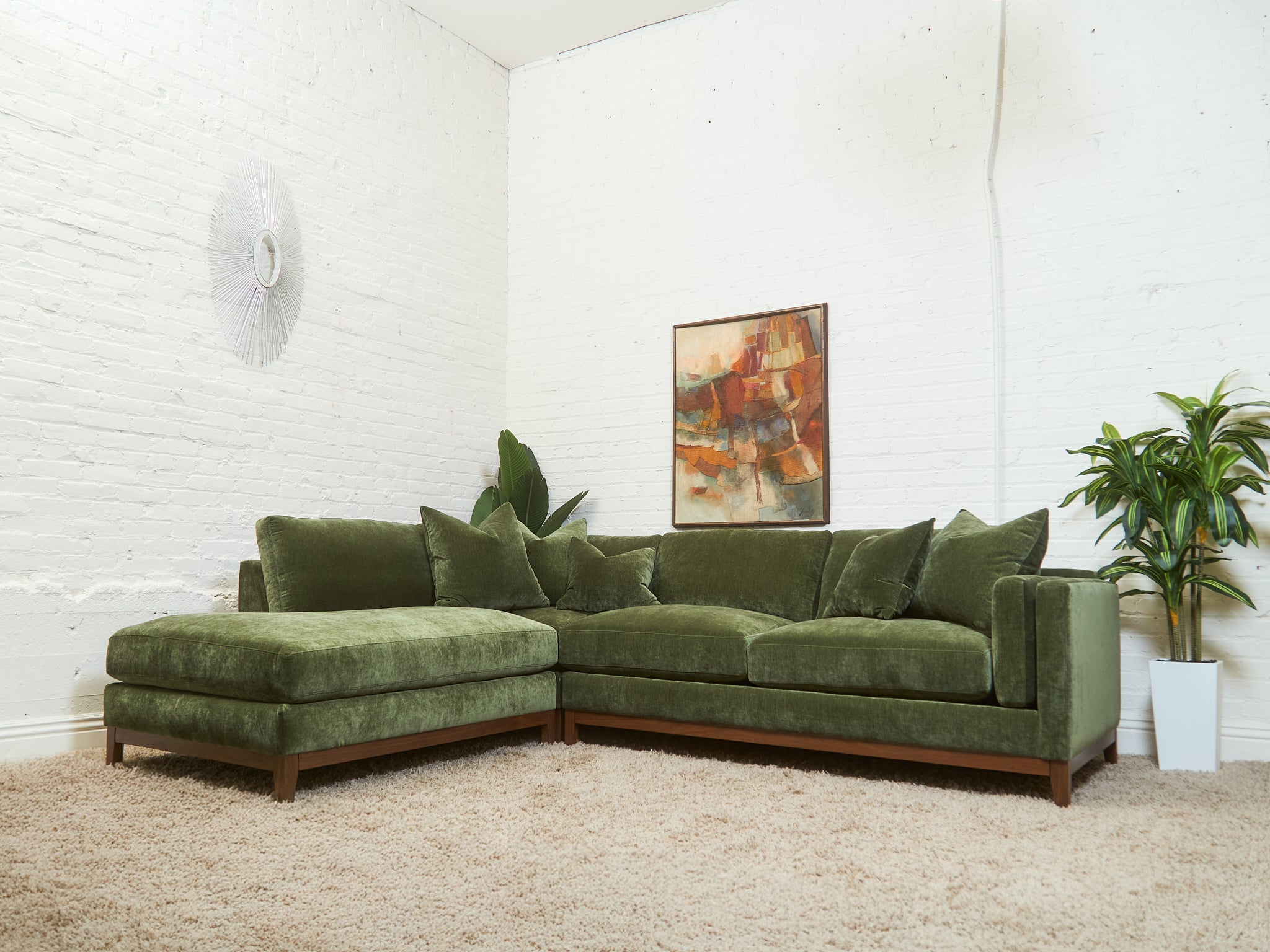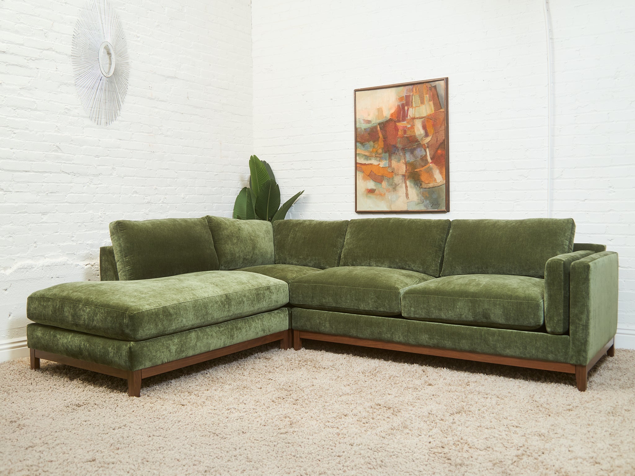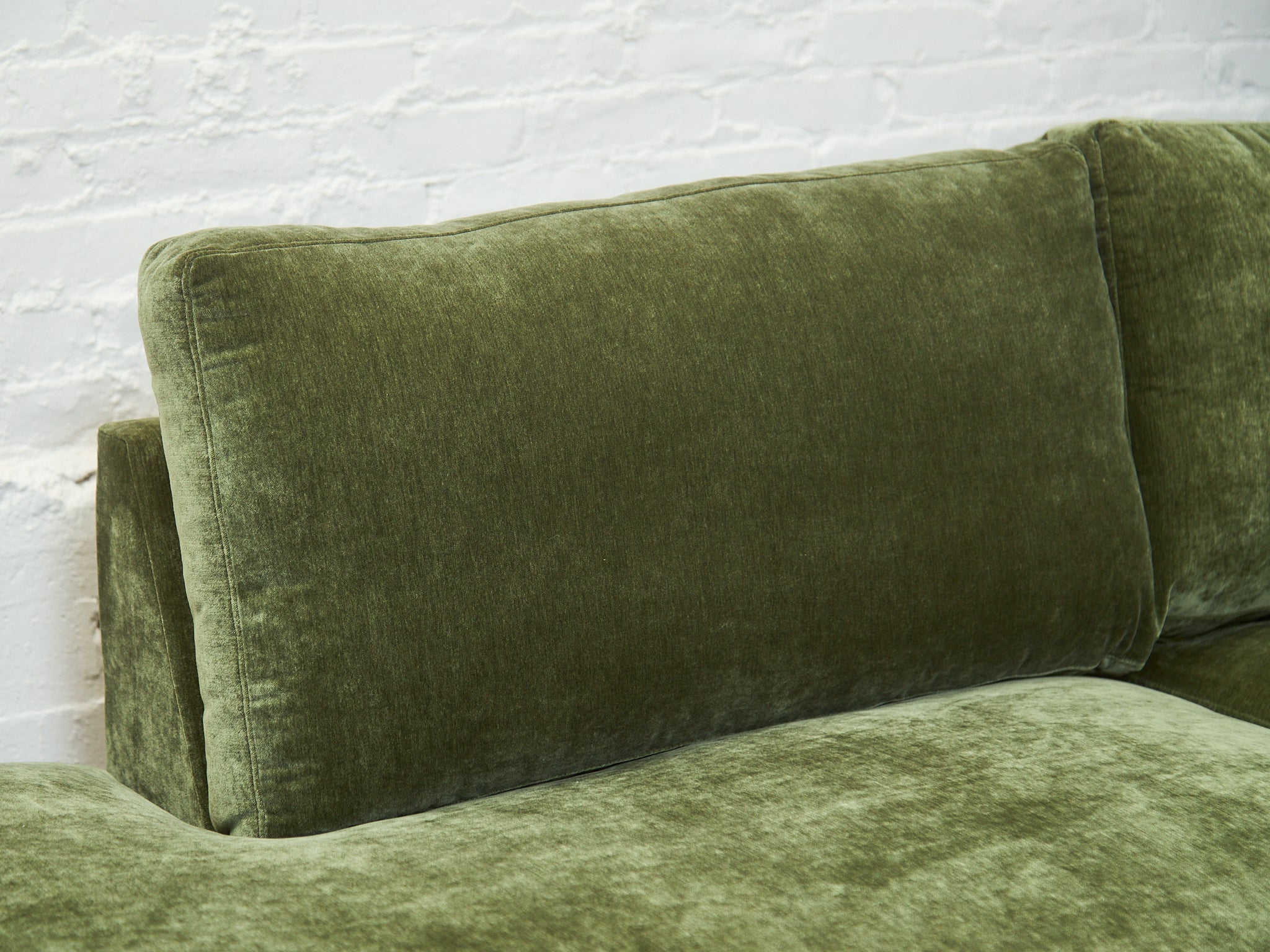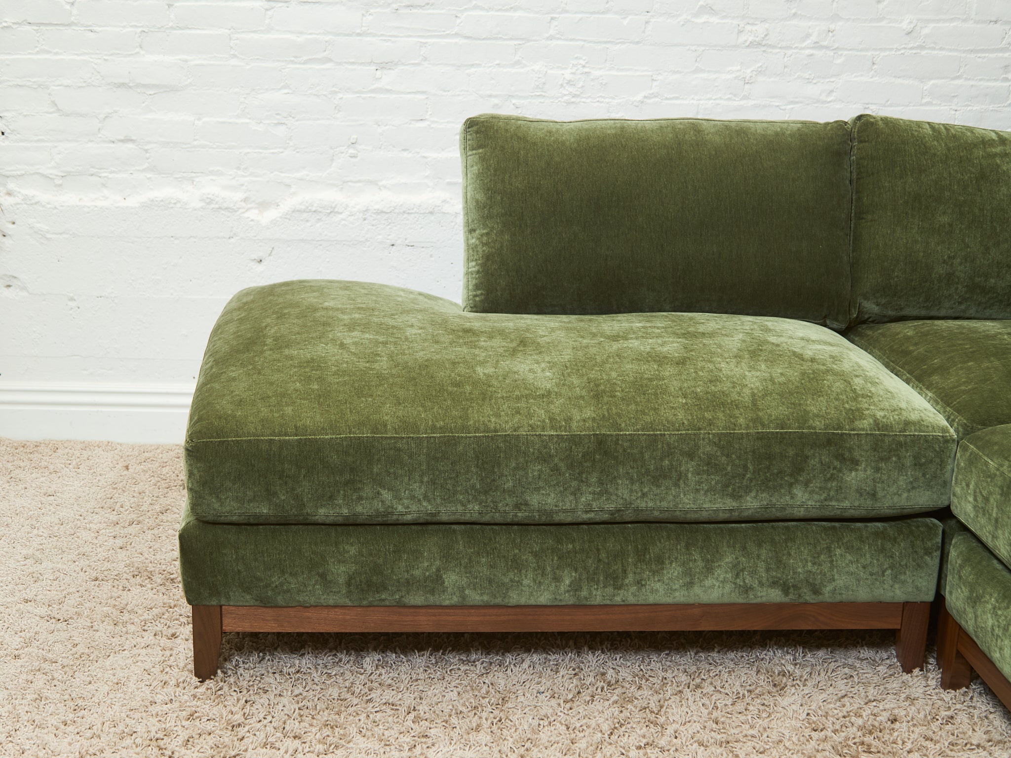 Lisette Sectional Left Facing bumper chaise in Olive Moss