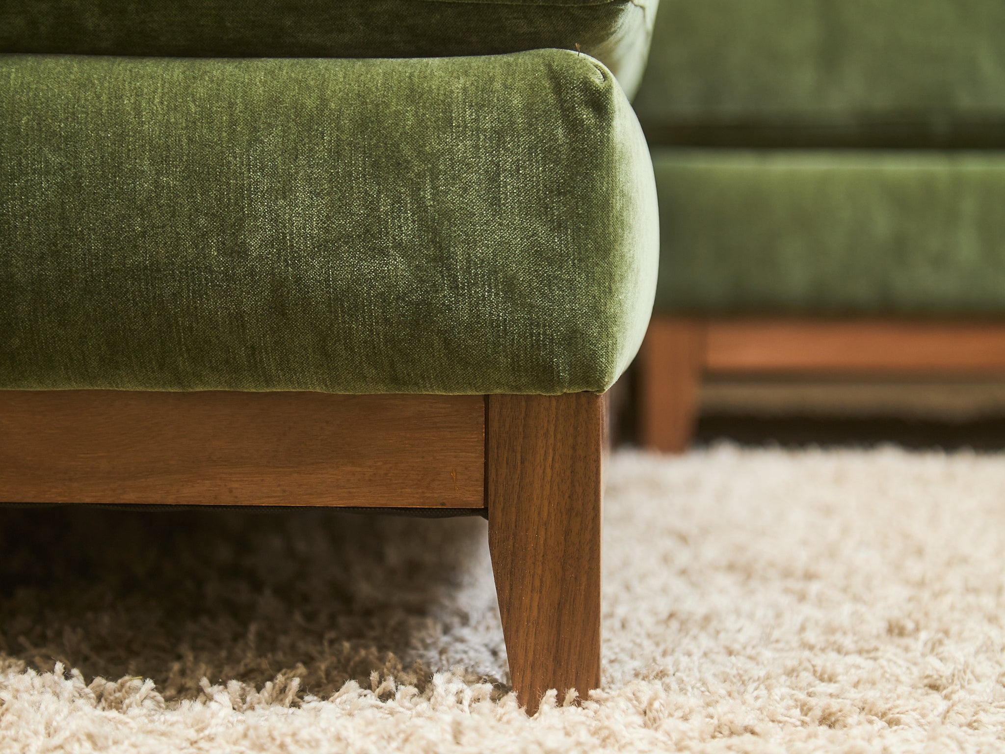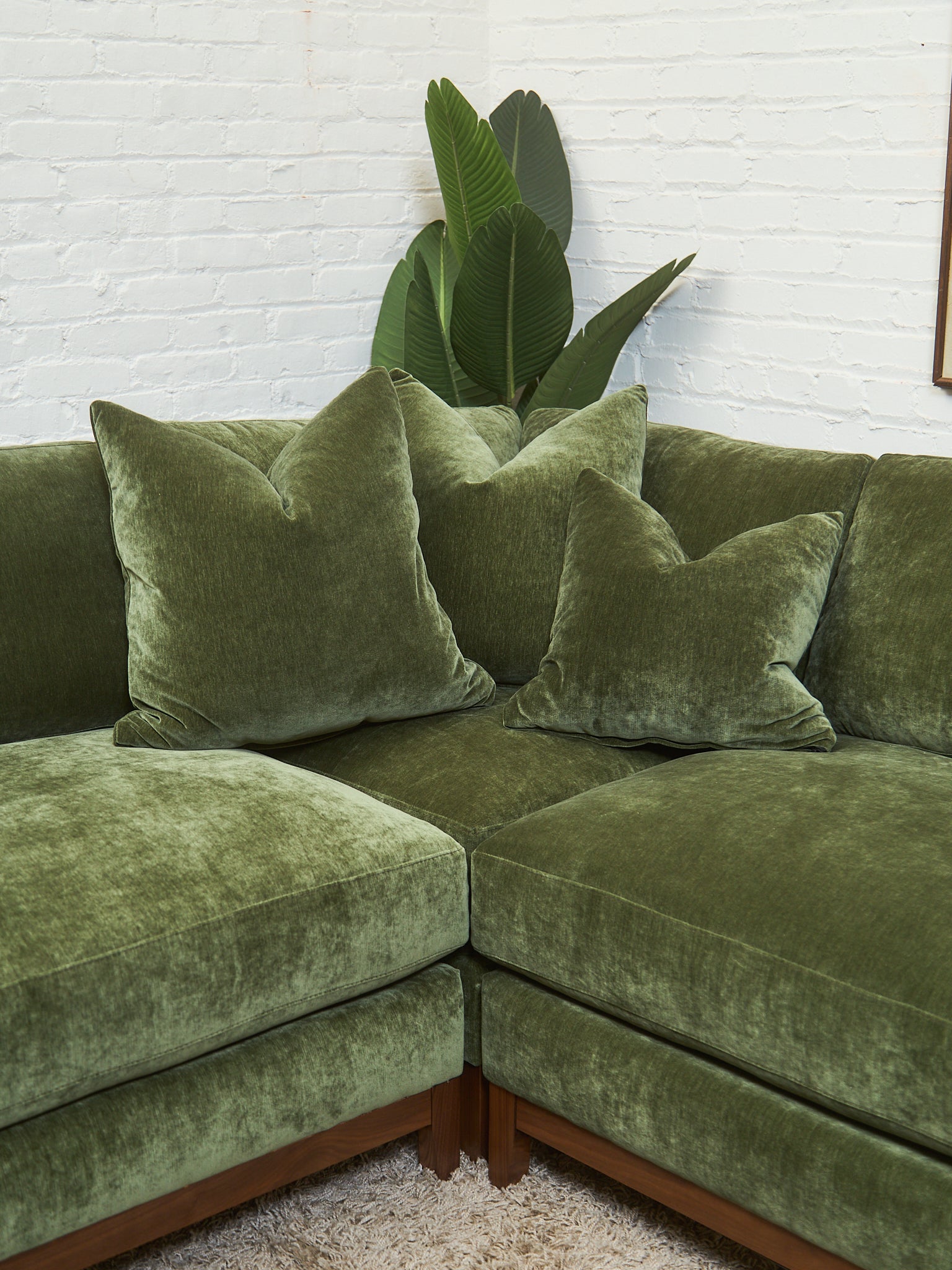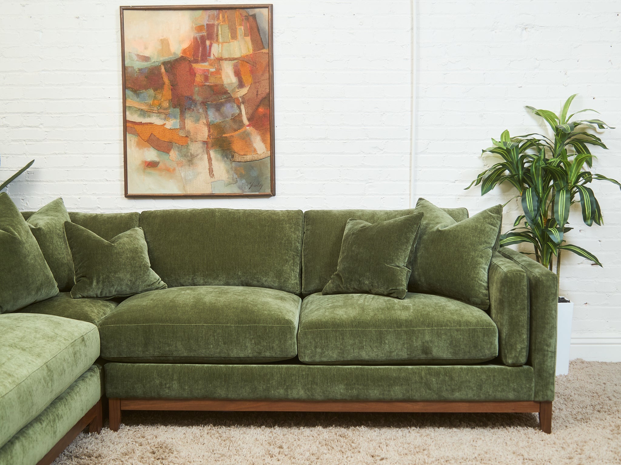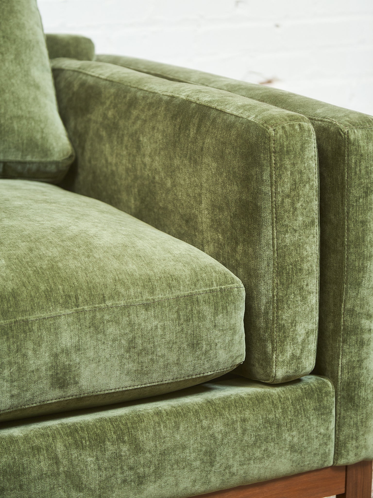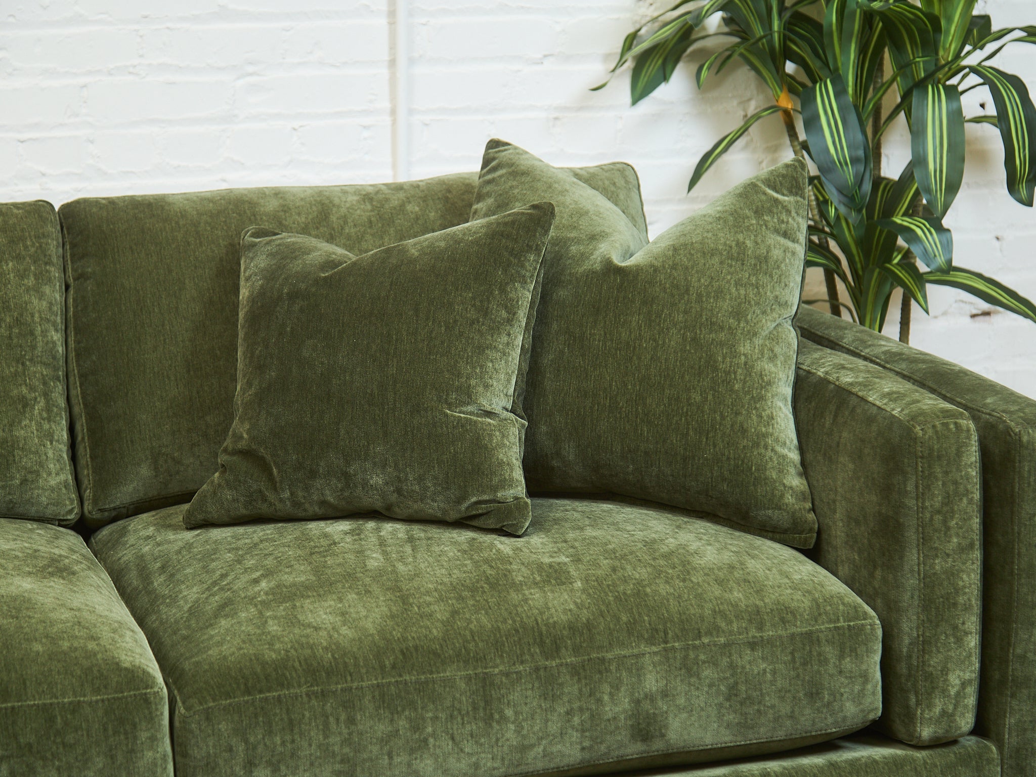 Lisette Sectional Left Facing bumper chaise in Olive Moss