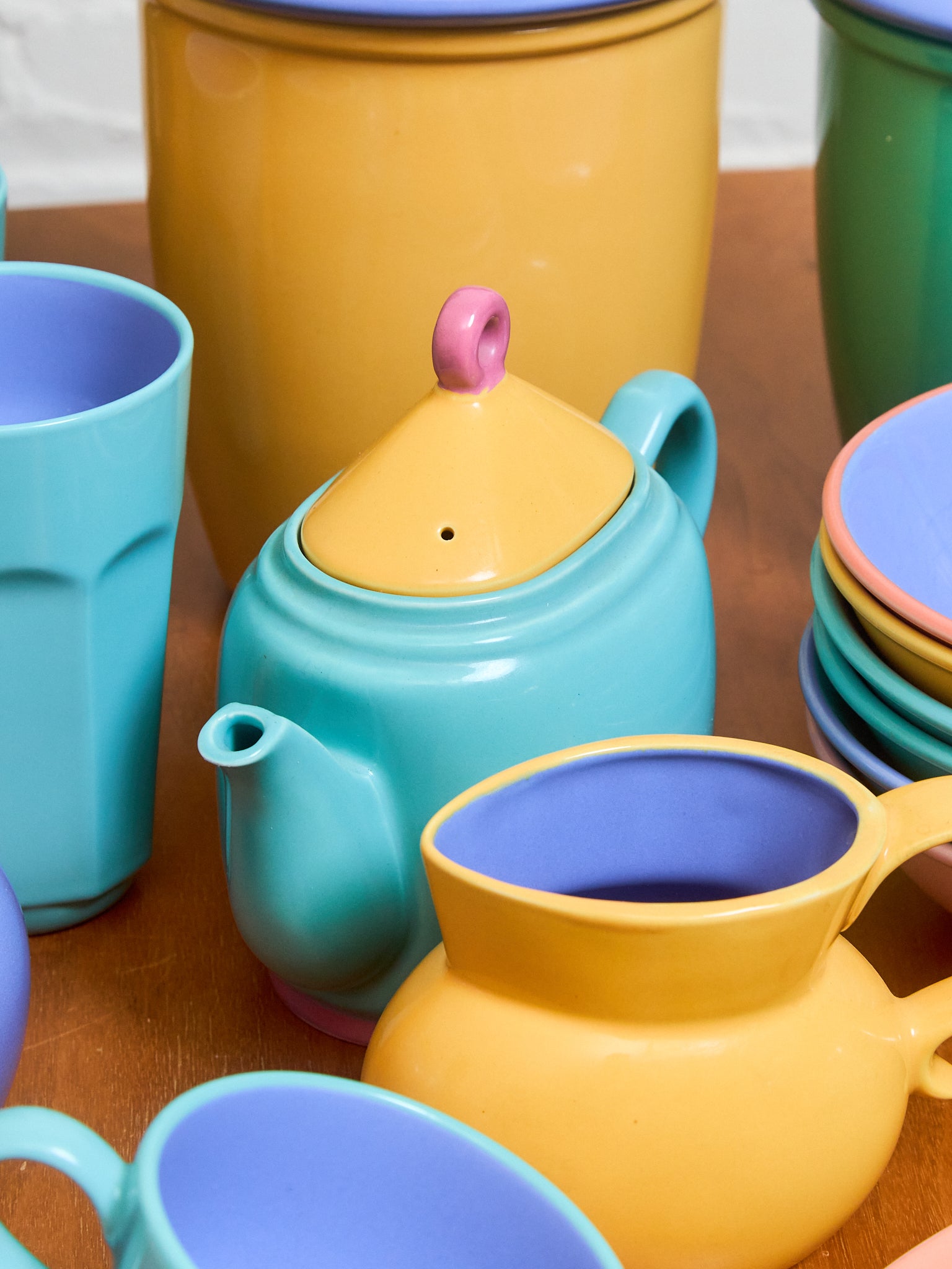 1 yellow creamer jug: 5.75”W x 3.25”D x 4”H