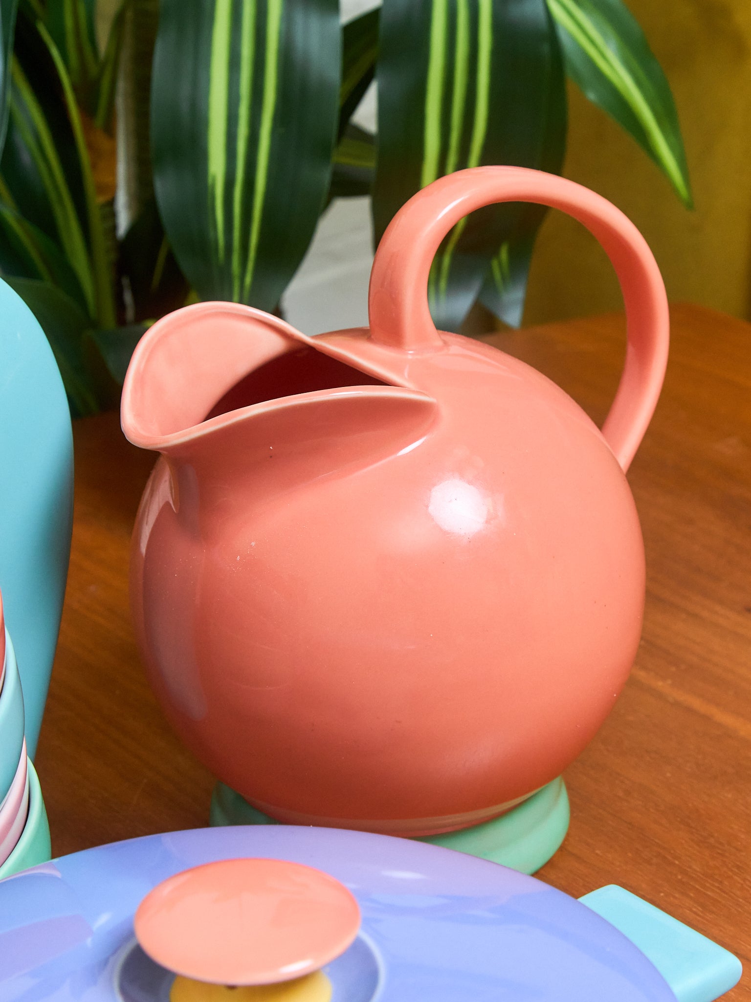 1 bulbous pink pitcher: 8.5”W x 6.5”D x 8.5”H
