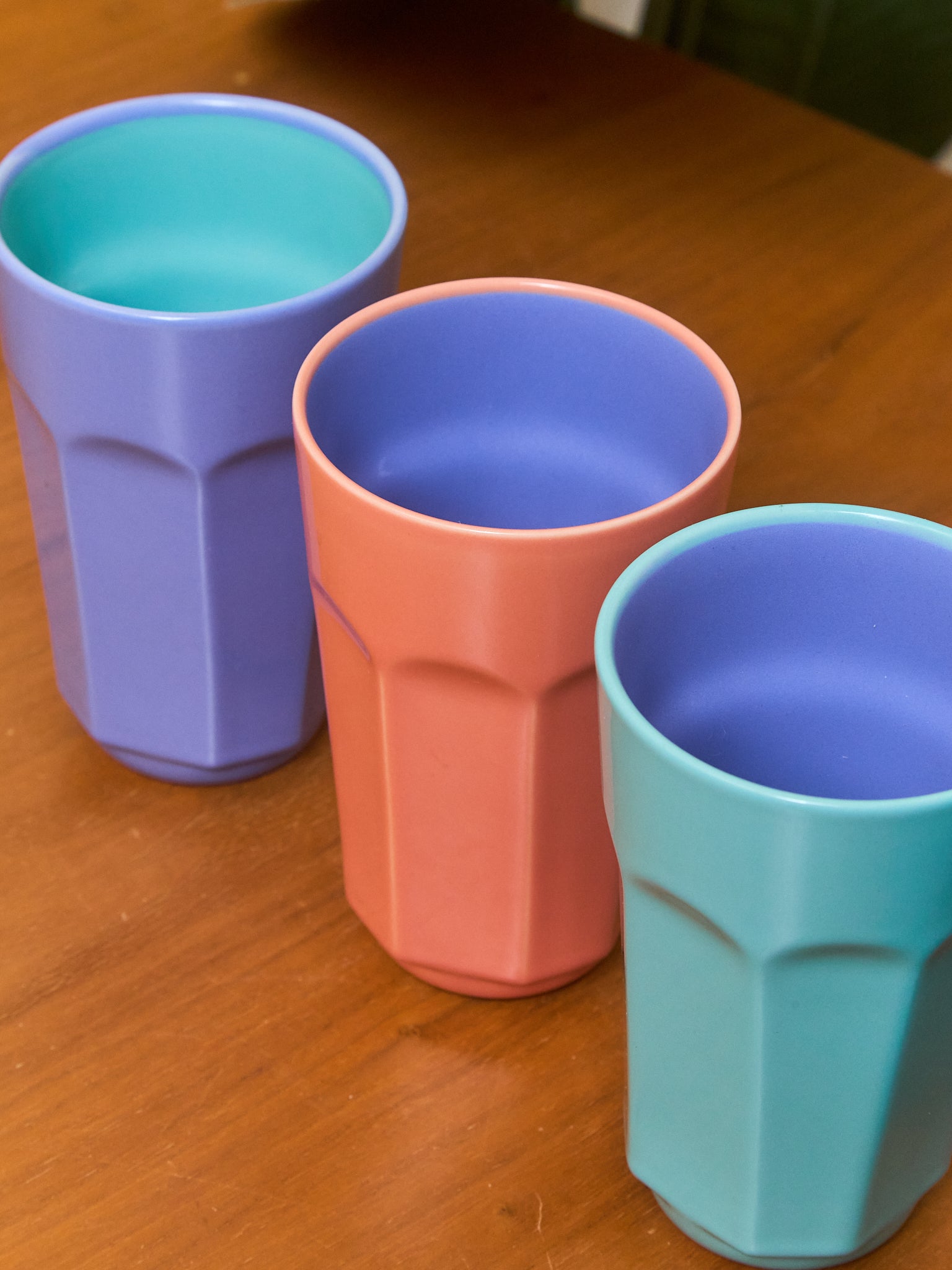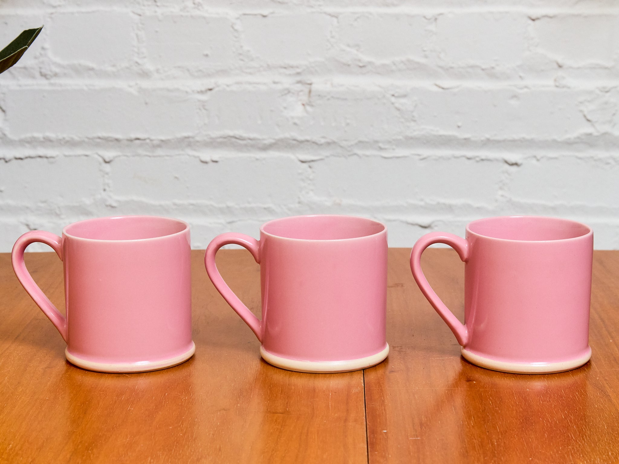 3 large pink mugs: 3.5” Diameter x 3.5”H