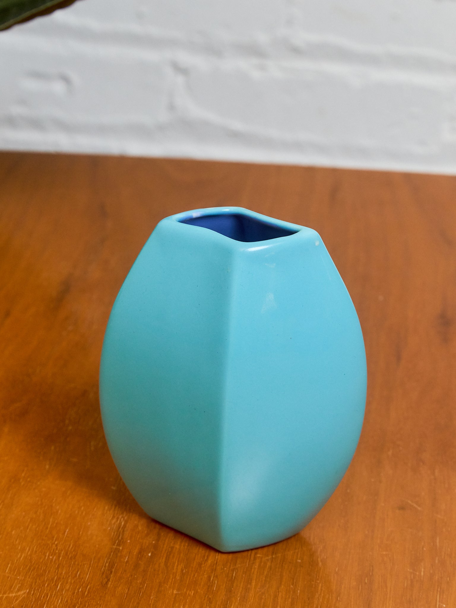 1 small turquoise vase: 3.75”W x 2.25”D x 5.25”H