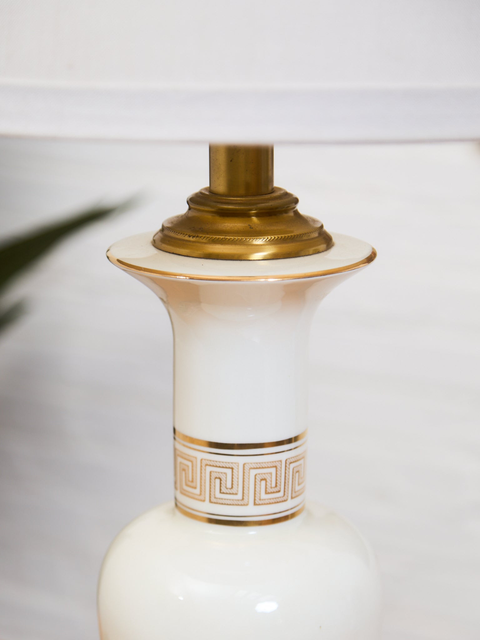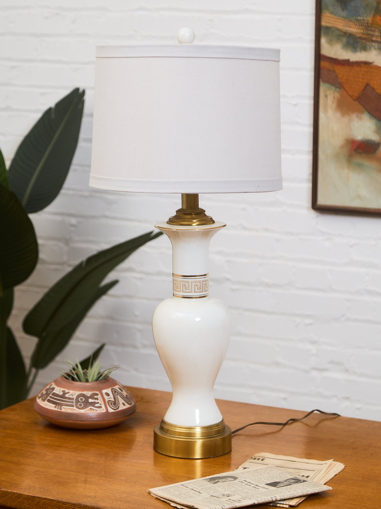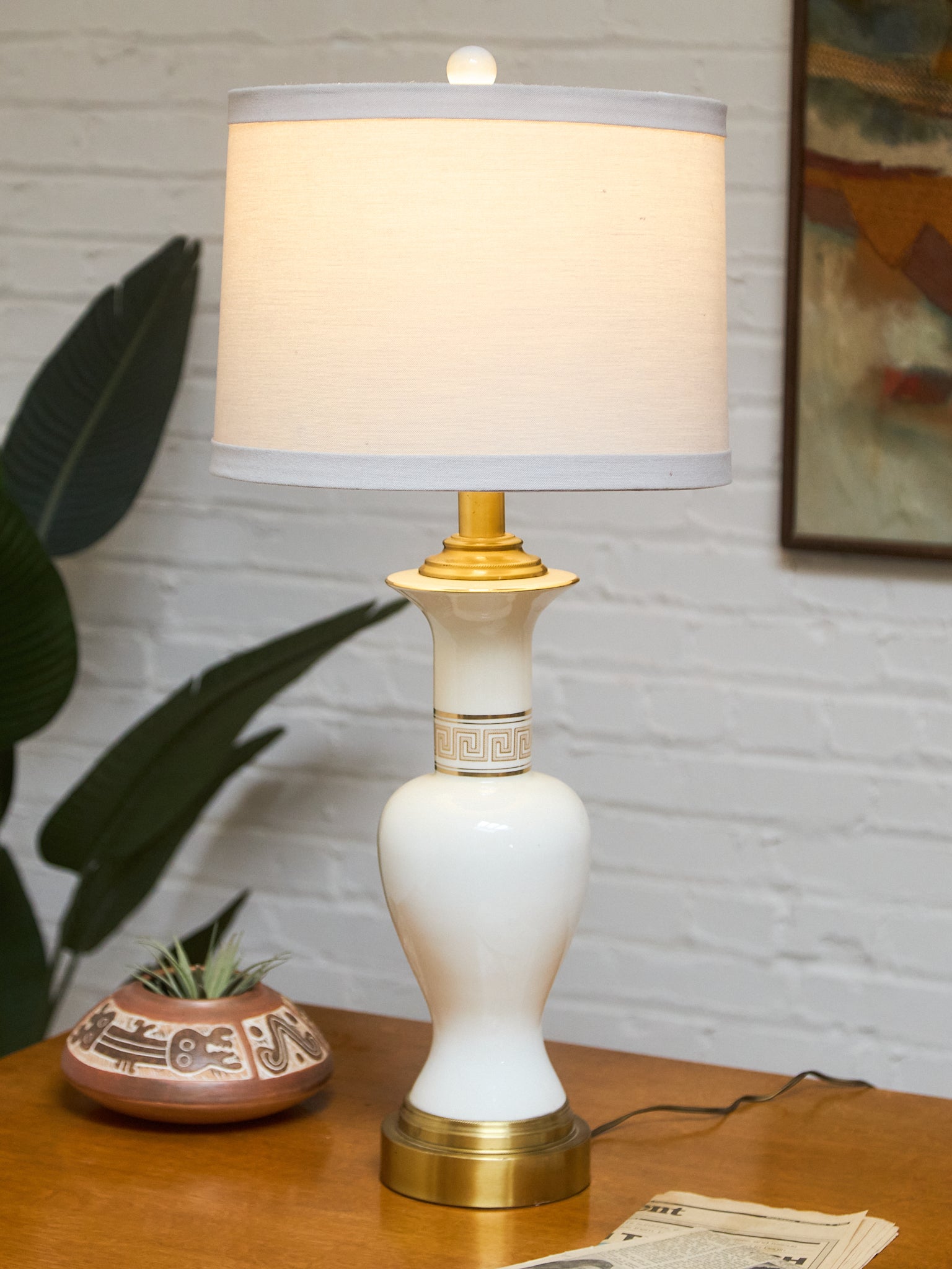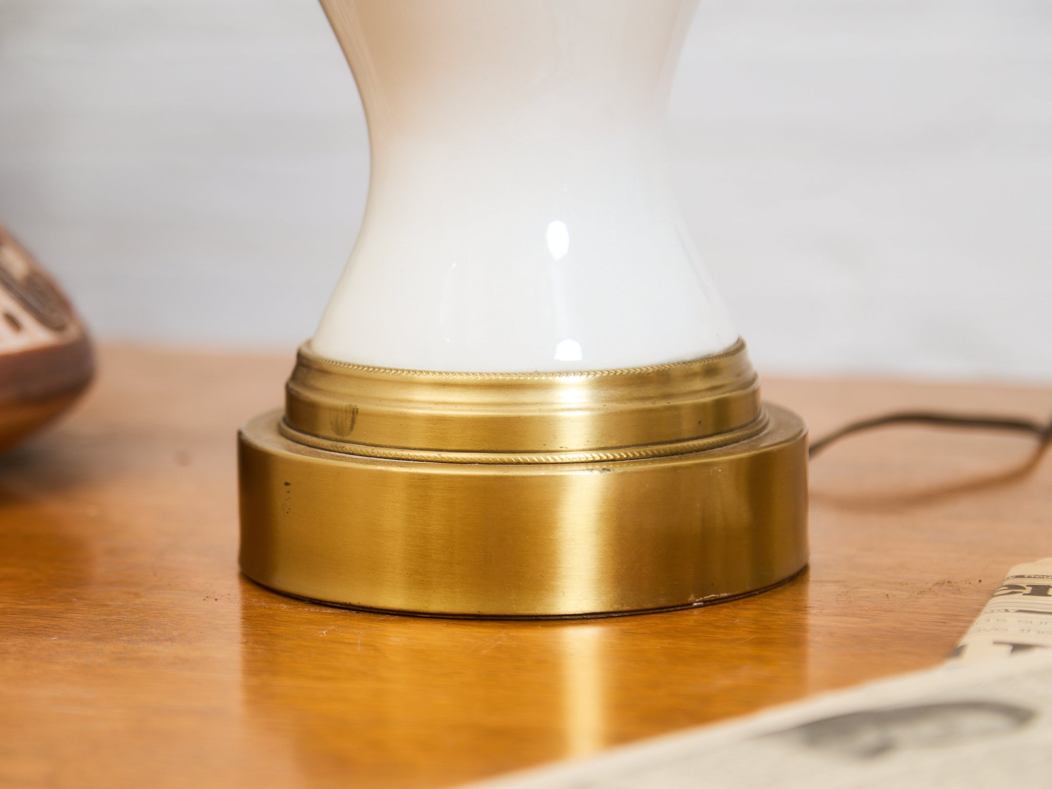 Mid-Century White Ceramic Table Lamp with Brass Base