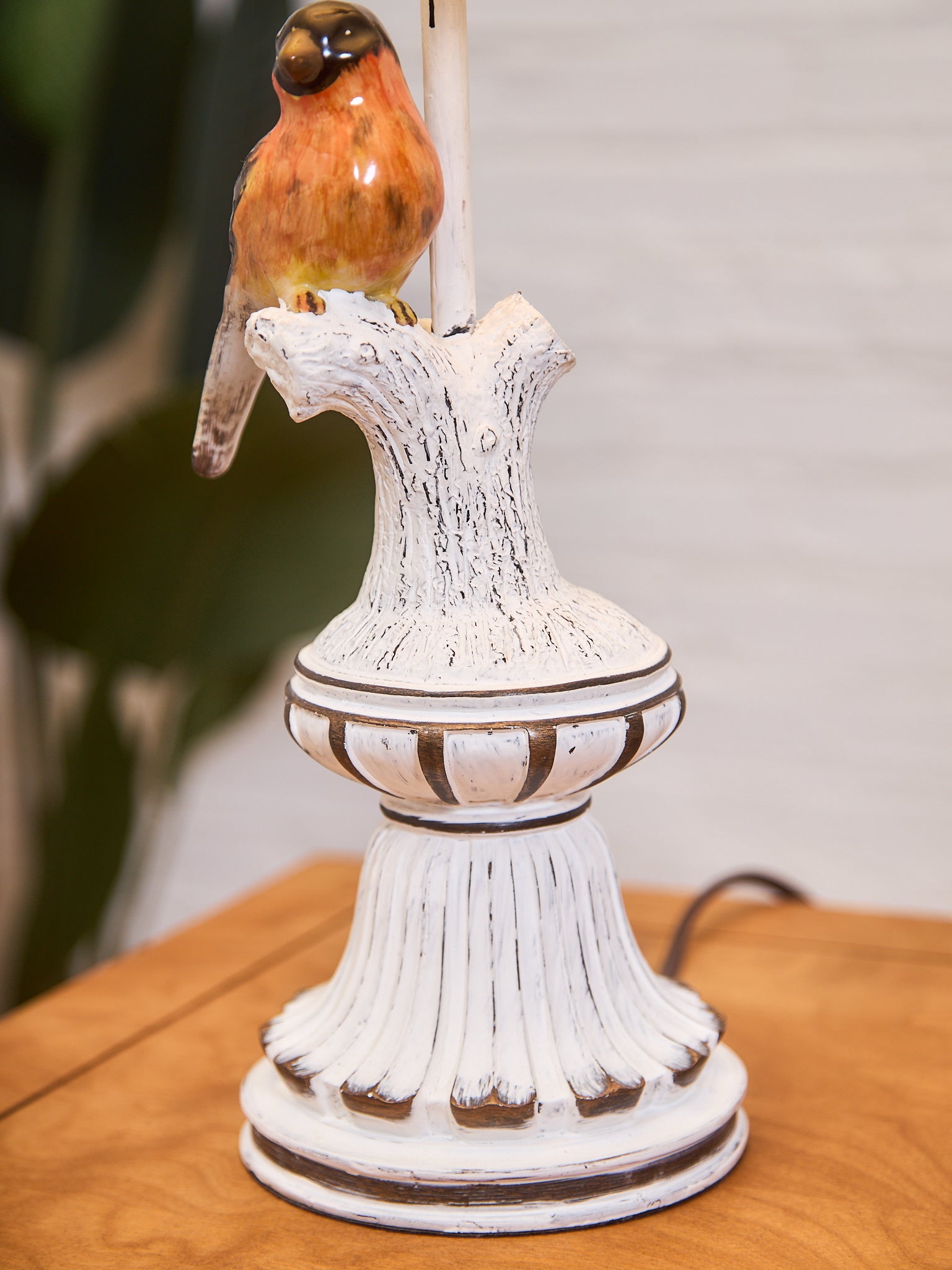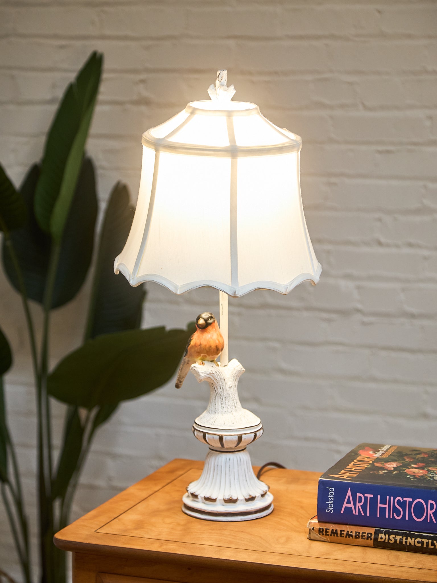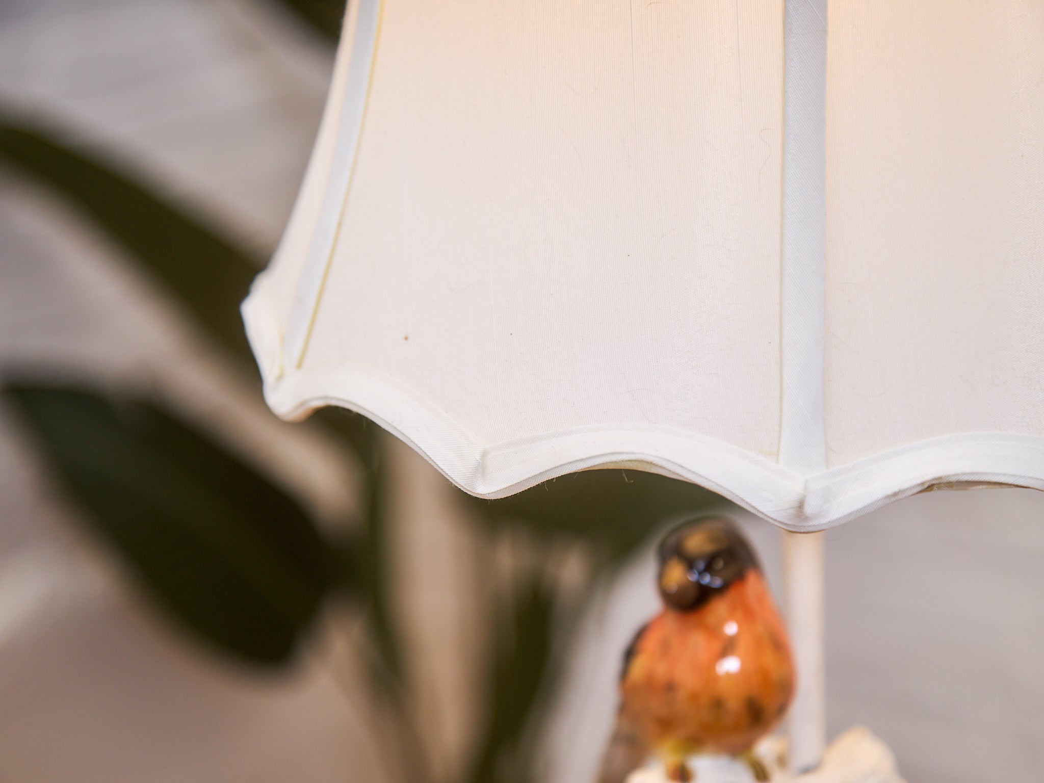 Pair of Whimsical Ceramic Bird Table Lamps with Pleated Shades