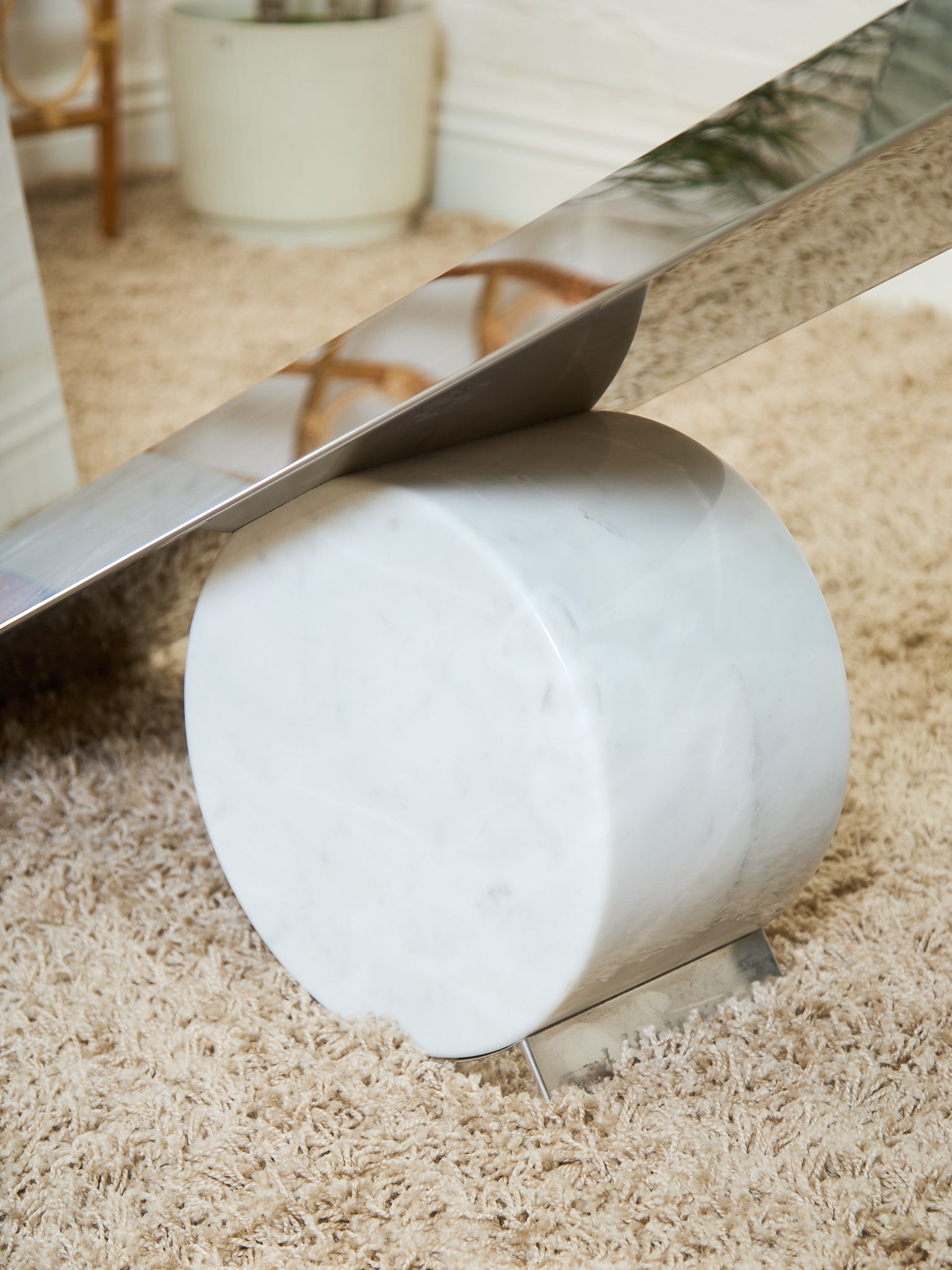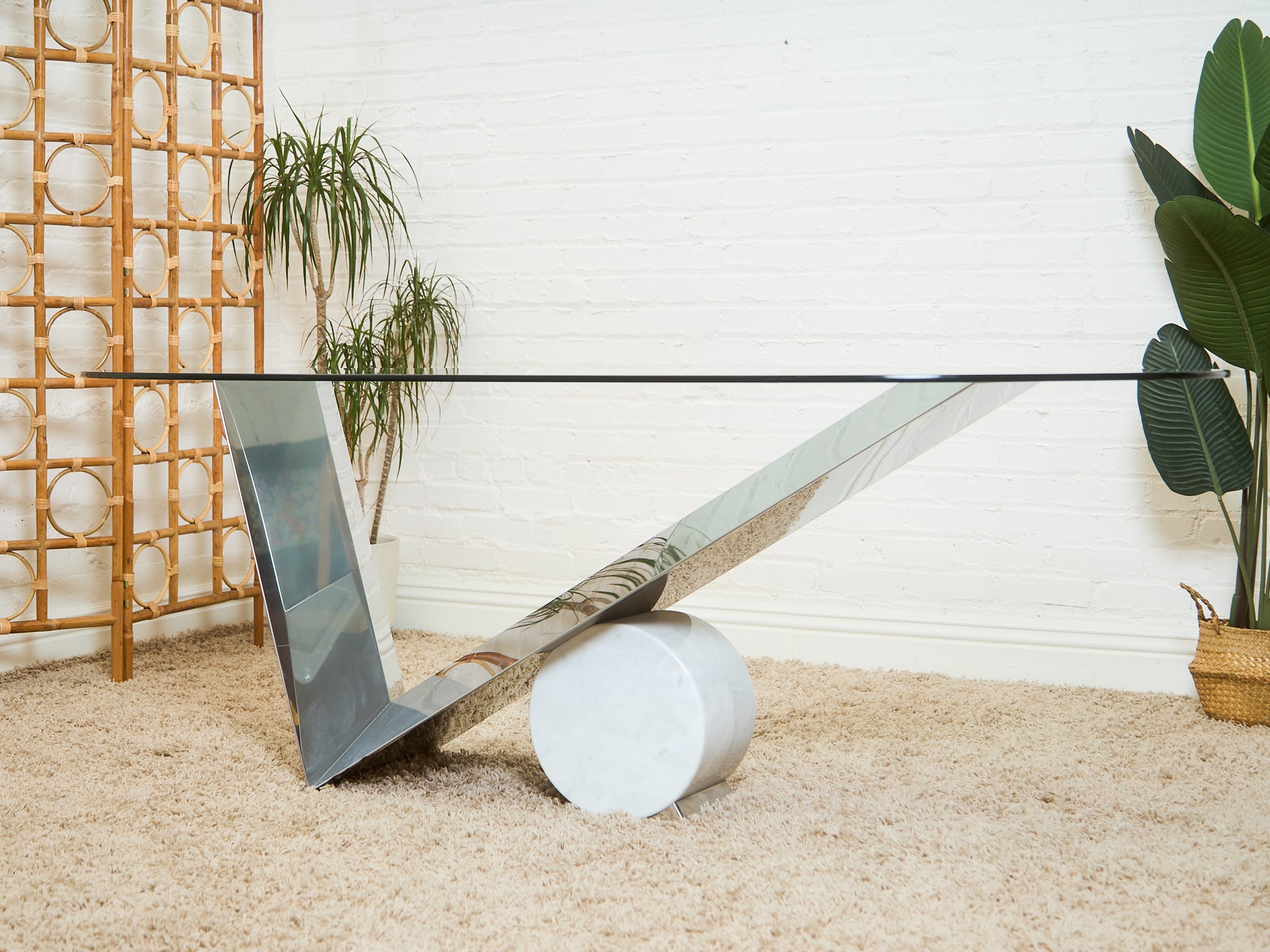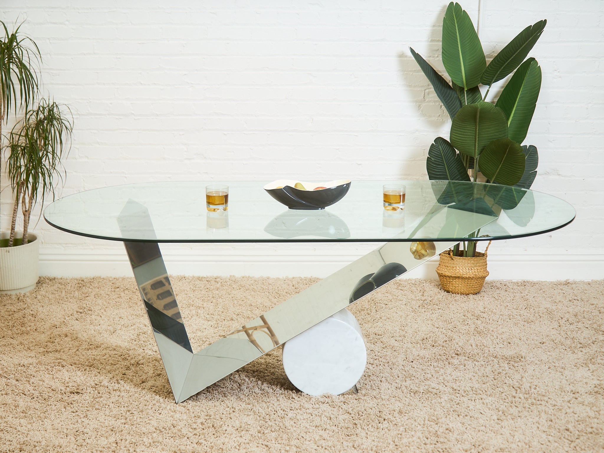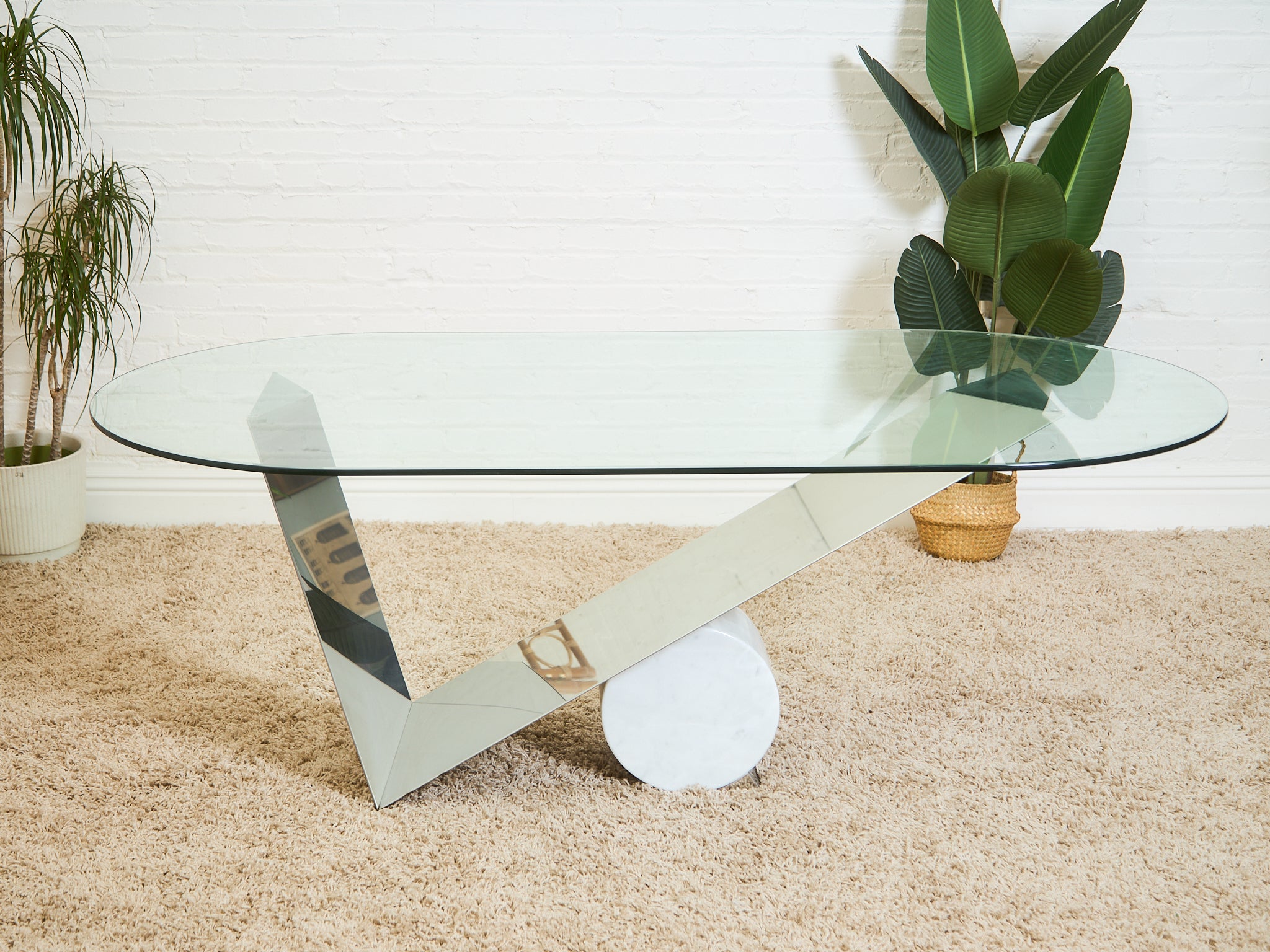 Italian Large Oval Table Cattellan Black Marble Steel and Crystal