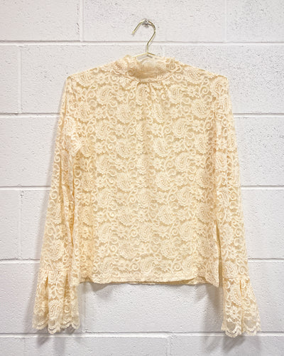Mock Neck Lace Blouse with Bell Sleeves (XL)