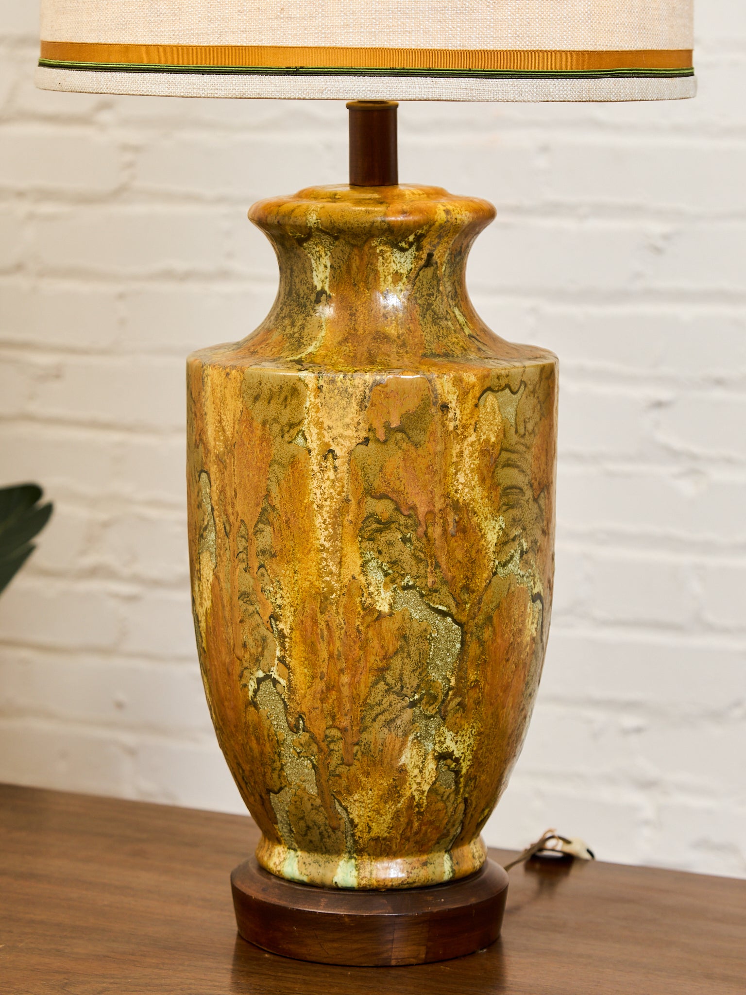 Italian Marbled Ceramic Table Lamp with Linen Shade