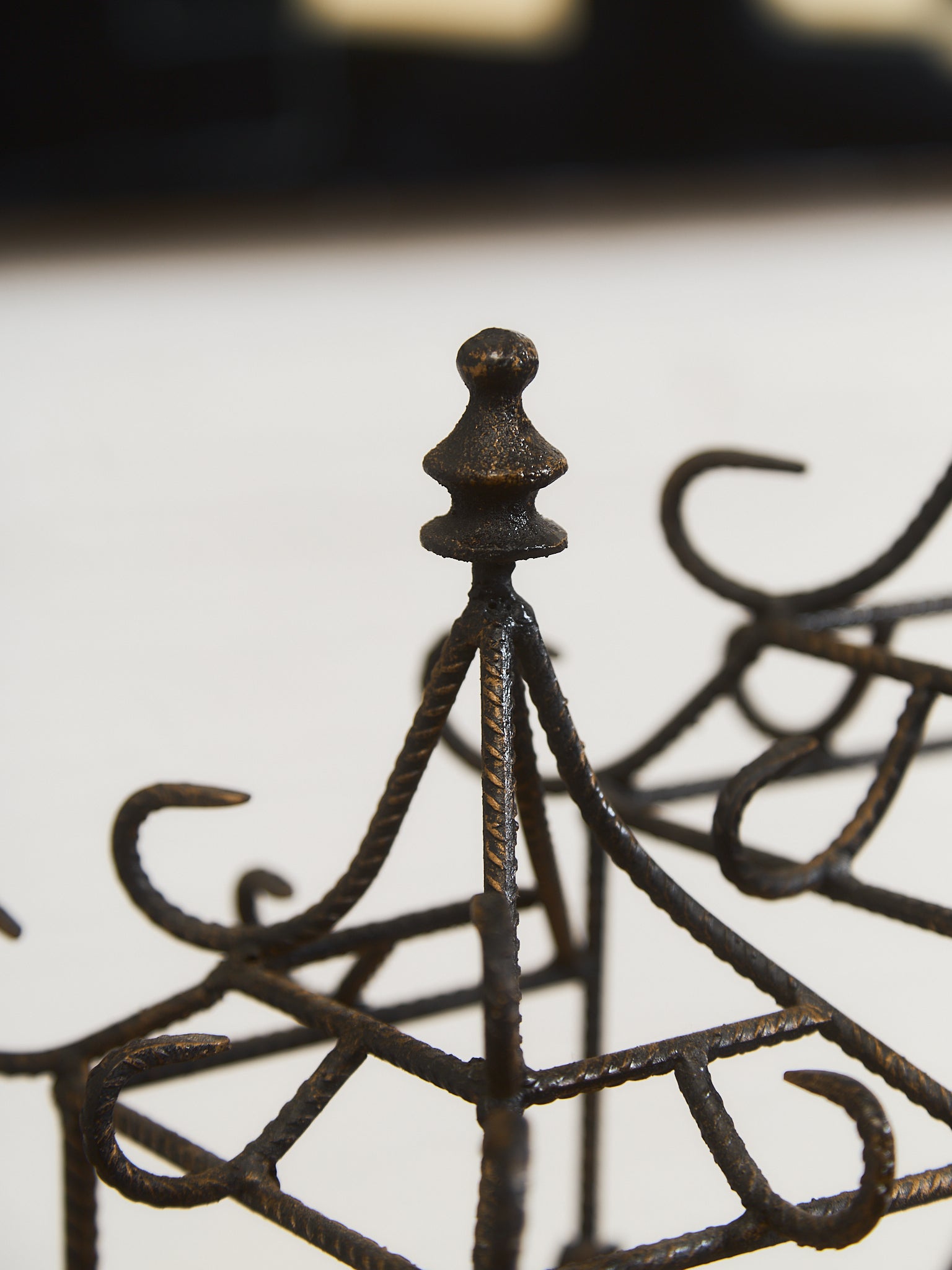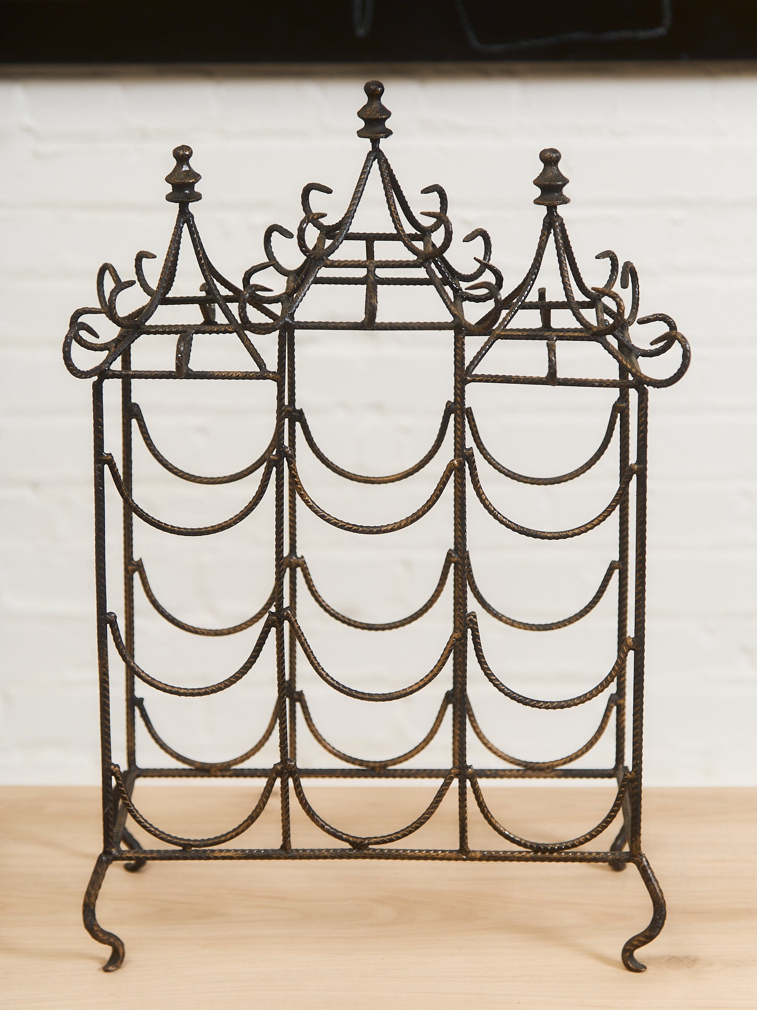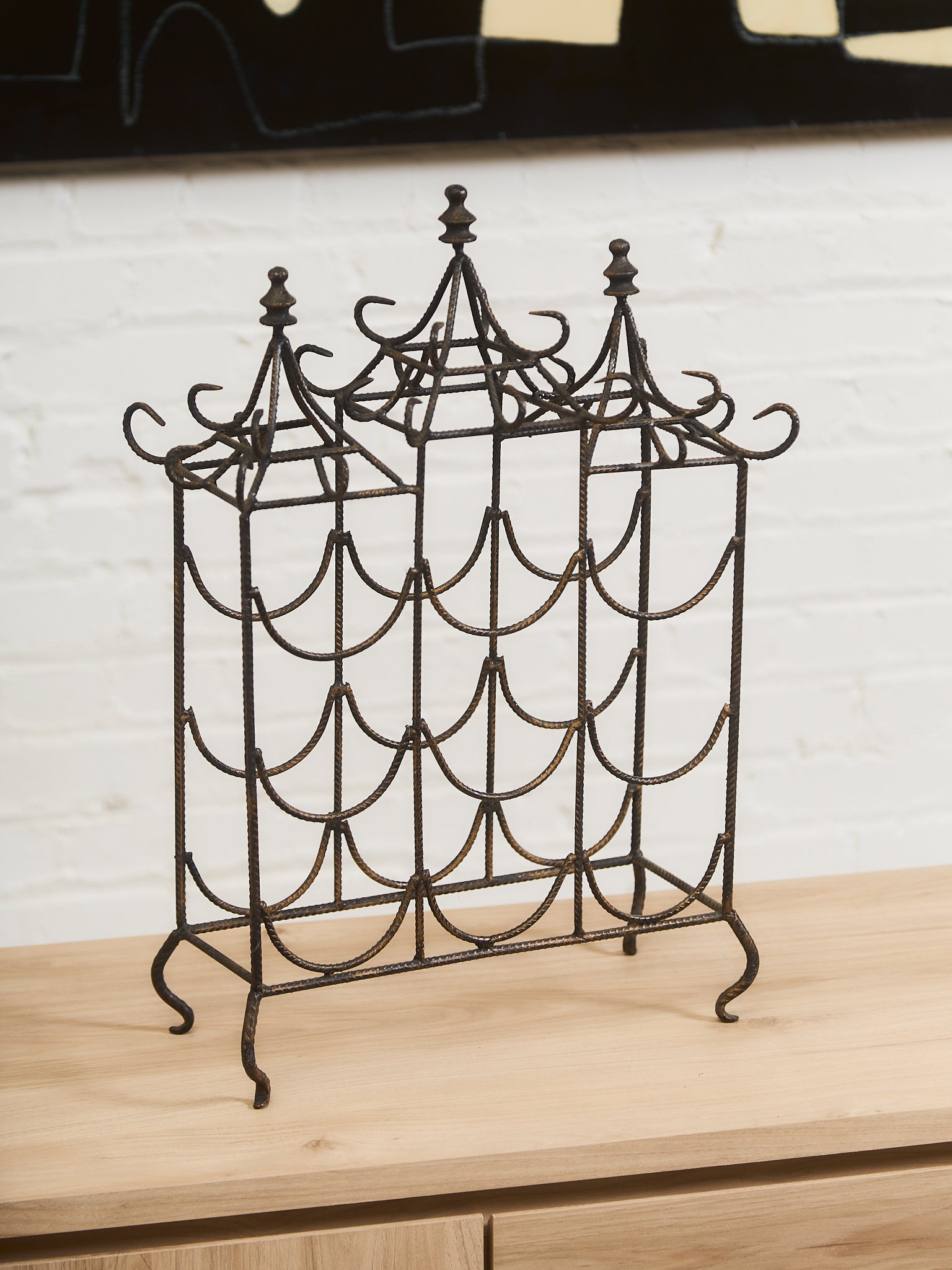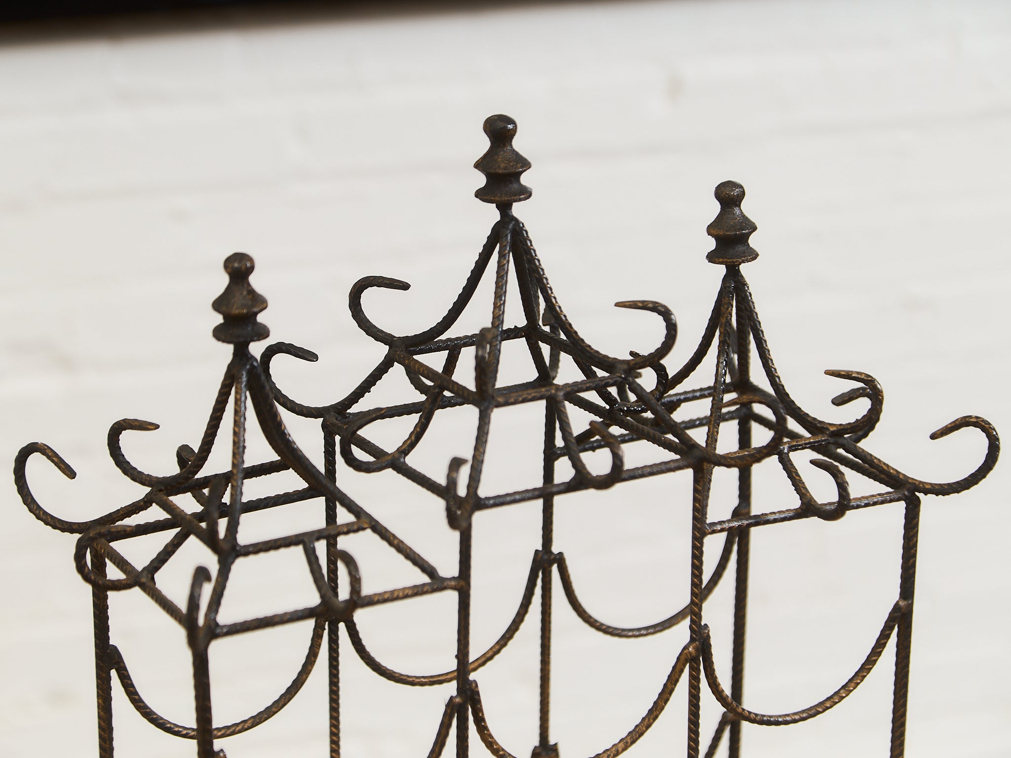 Antique Ornate Wrought Iron Pagoda-Style Wine Rack