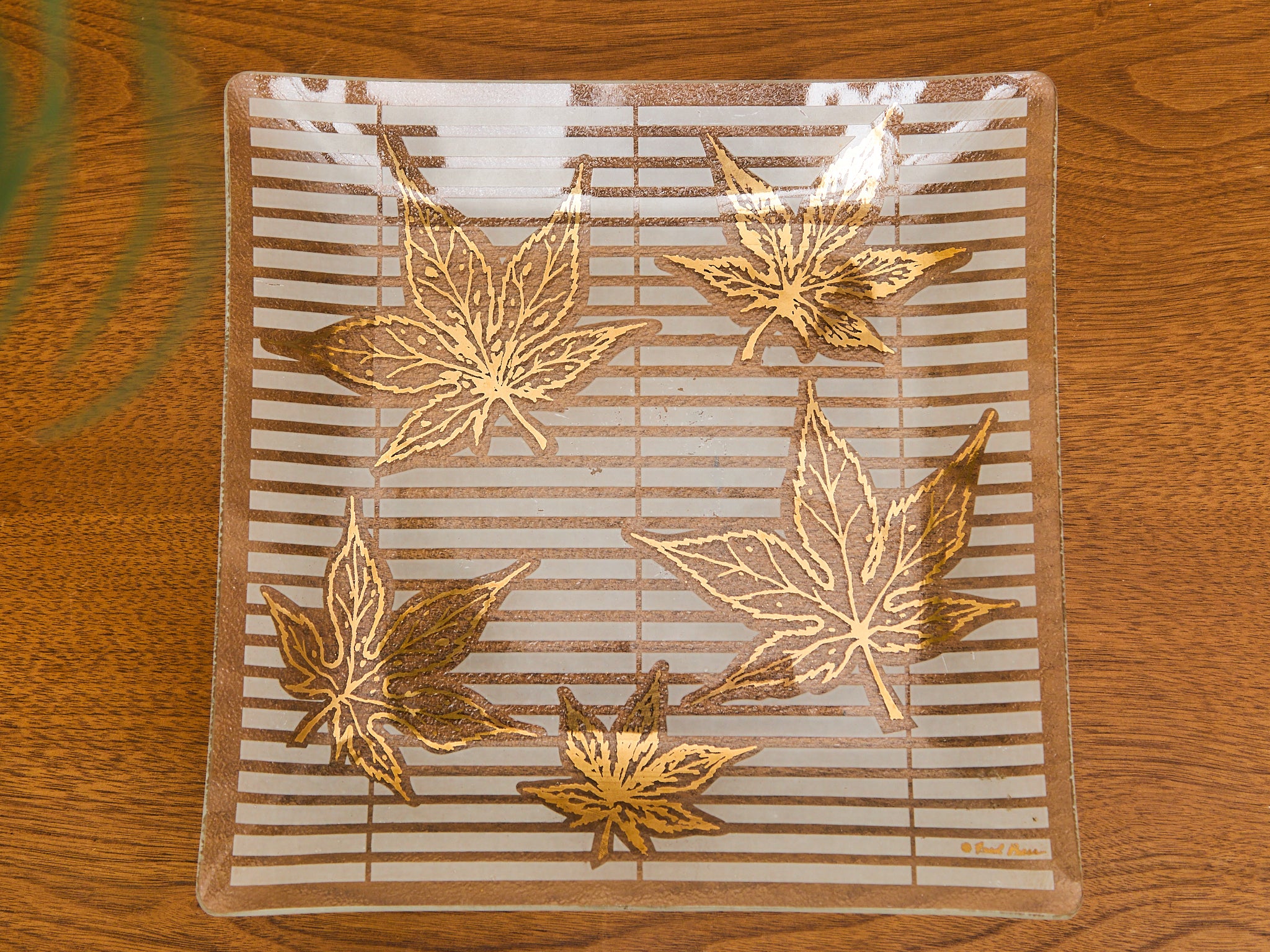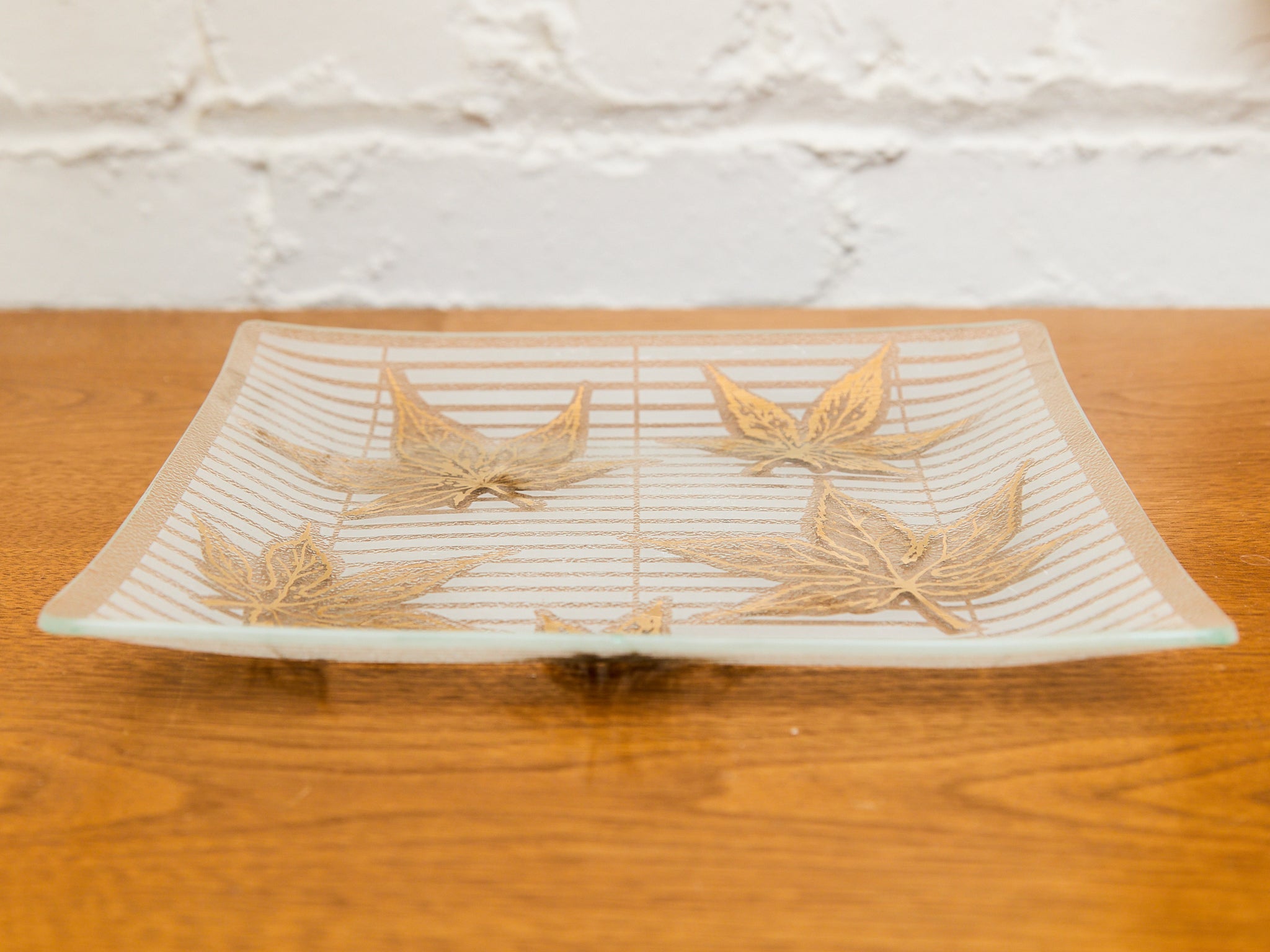 Large Vintage Fred Press Gold Leaf Glass Plate Dish