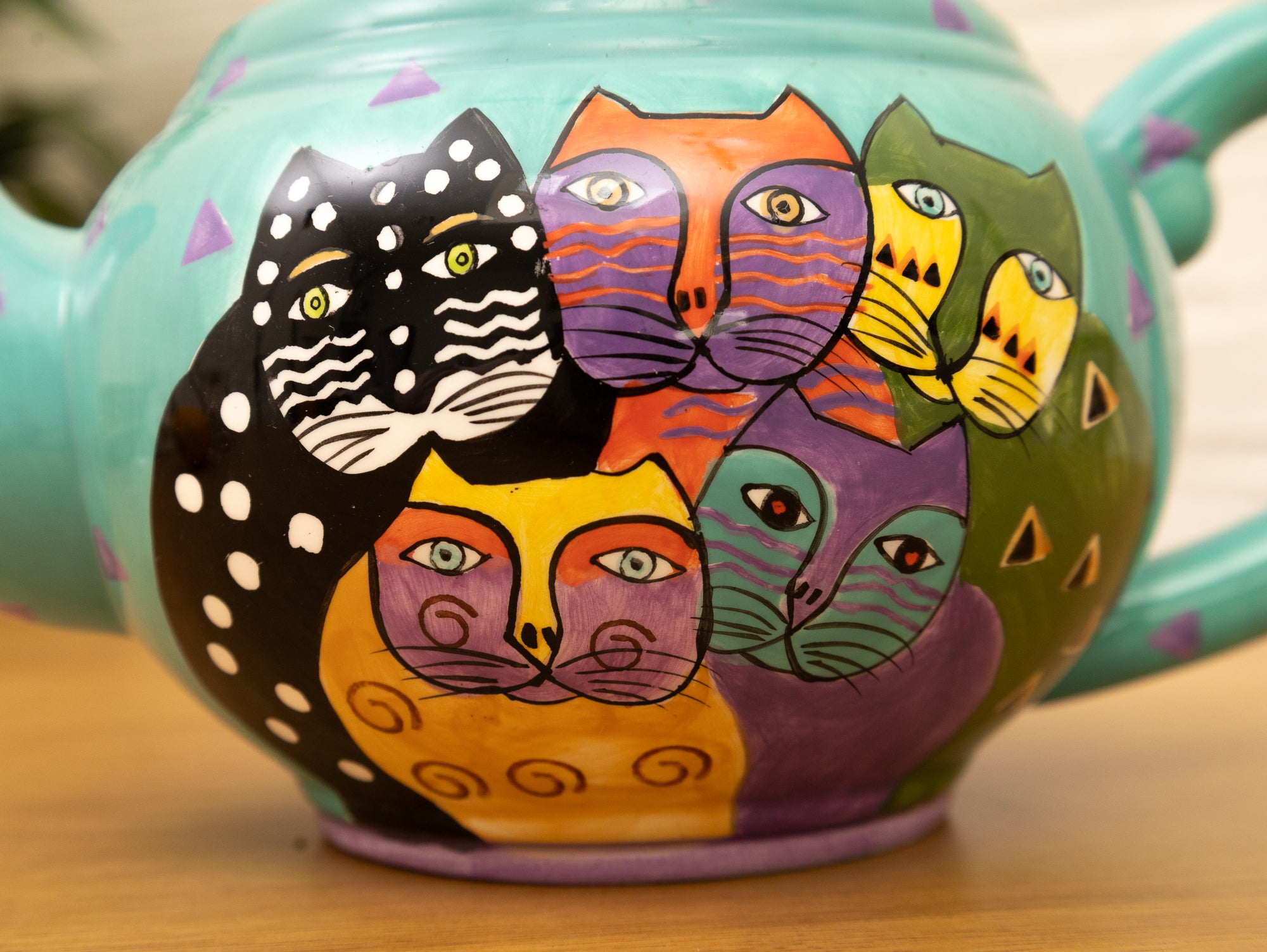 Laurel Burch ceramic teapot Five Whimsical Cats