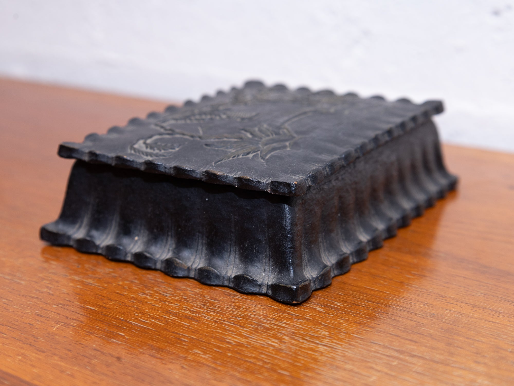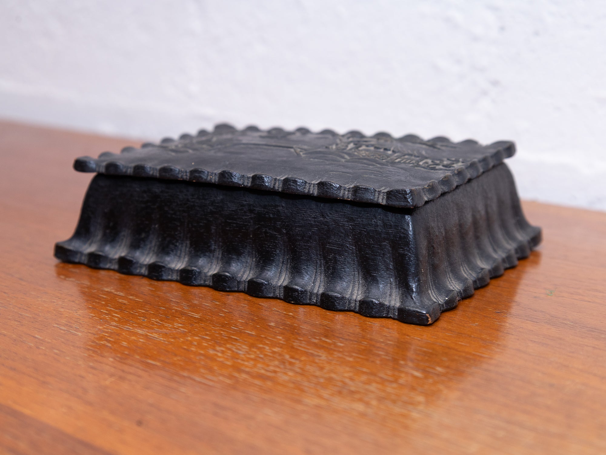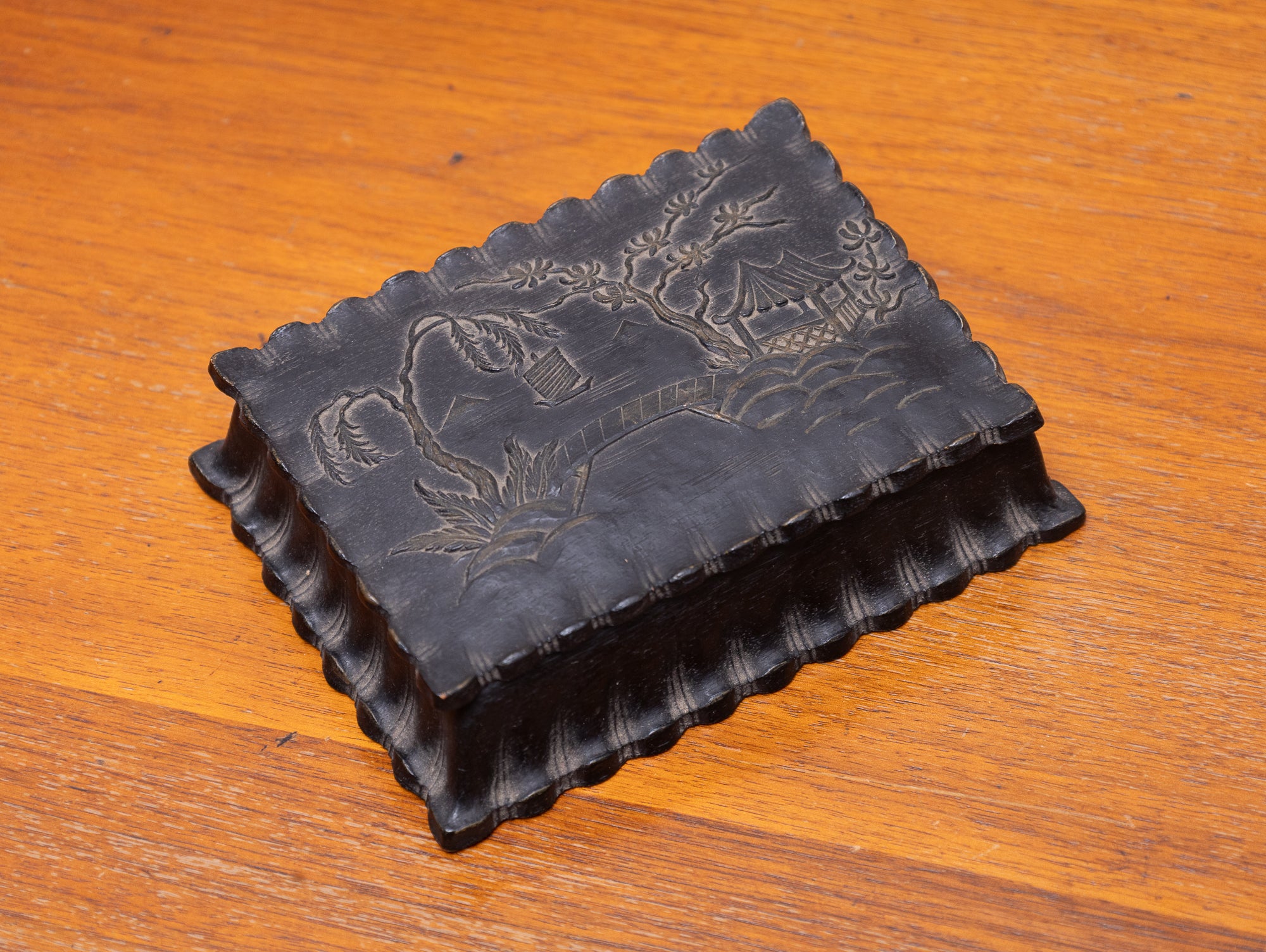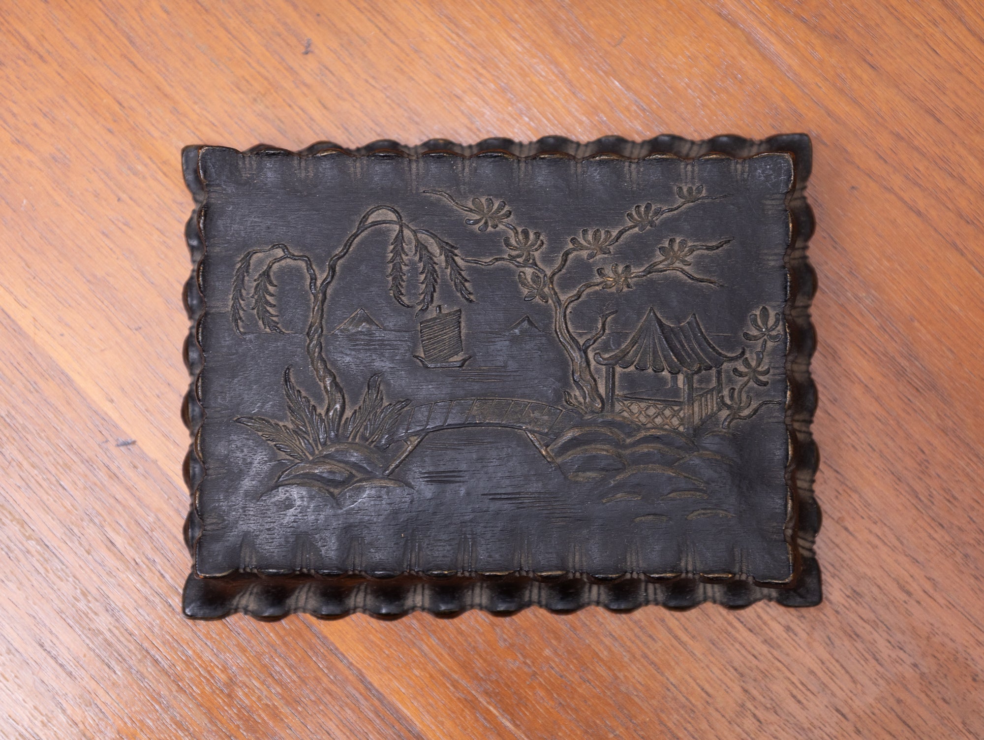 Vintage Syroco Trinket Box Black Japanese Pagoda Landscape