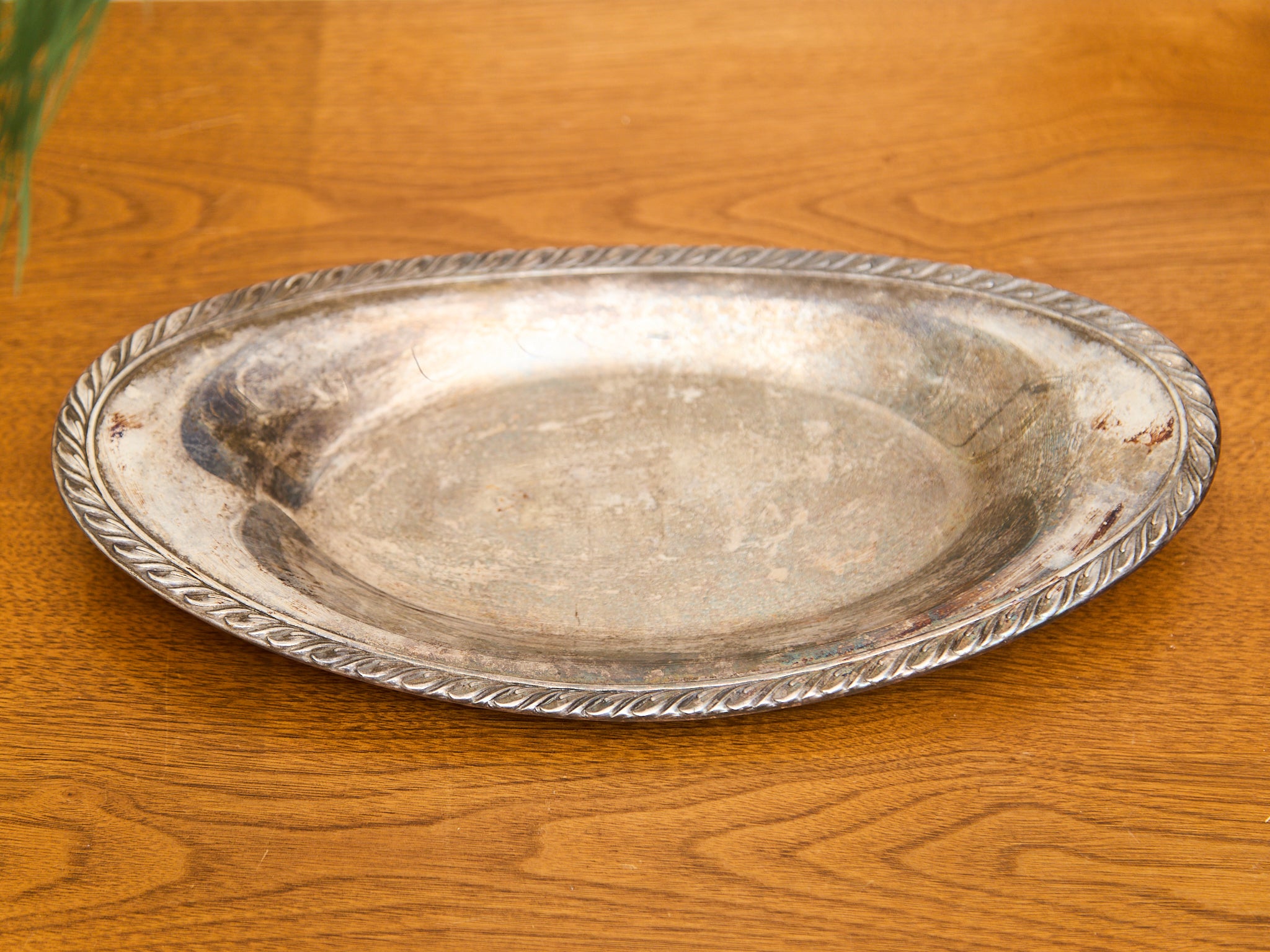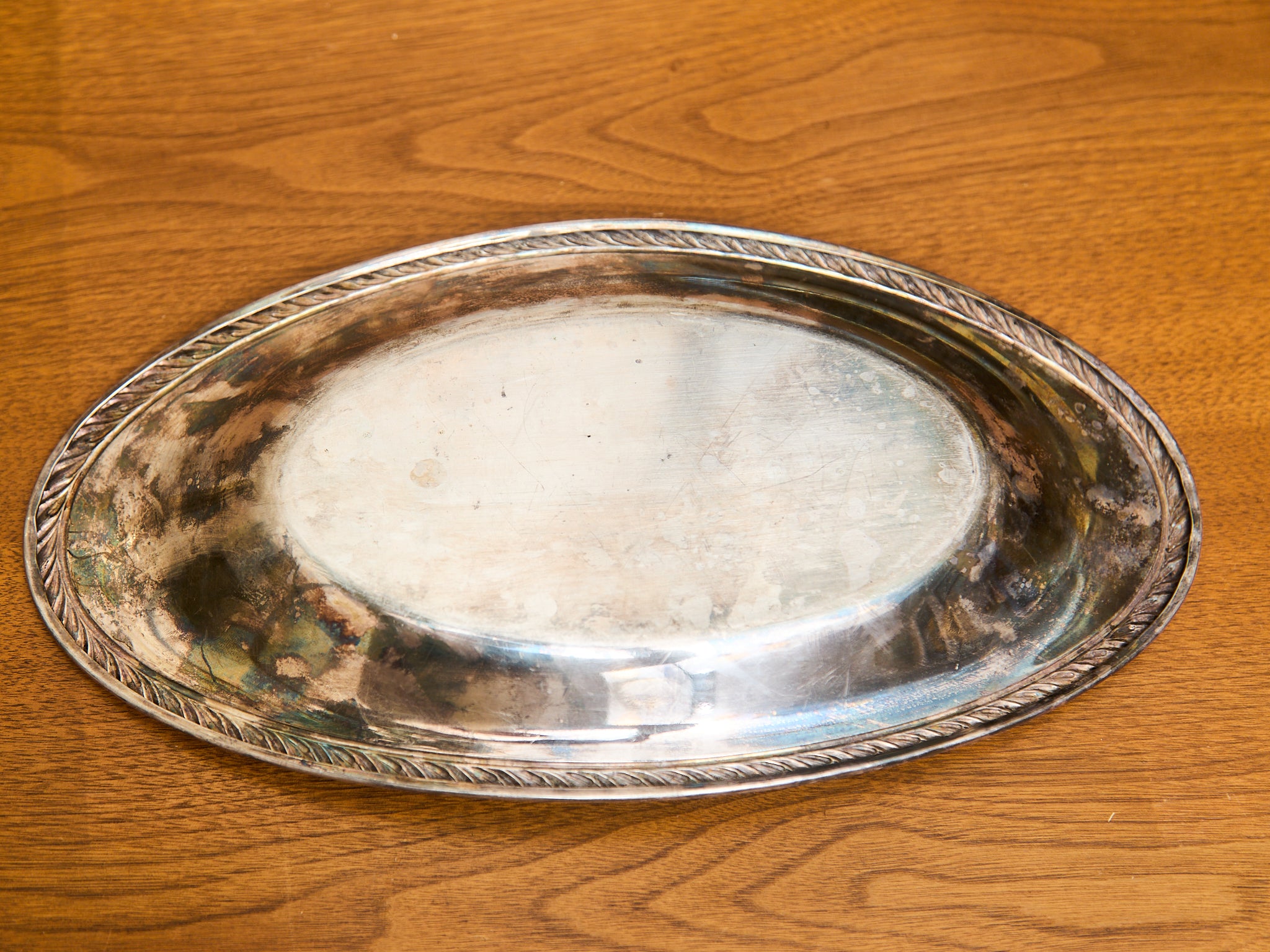 • Load image into Gallery viewer, Silver Plated Oval Braided Edge Tray