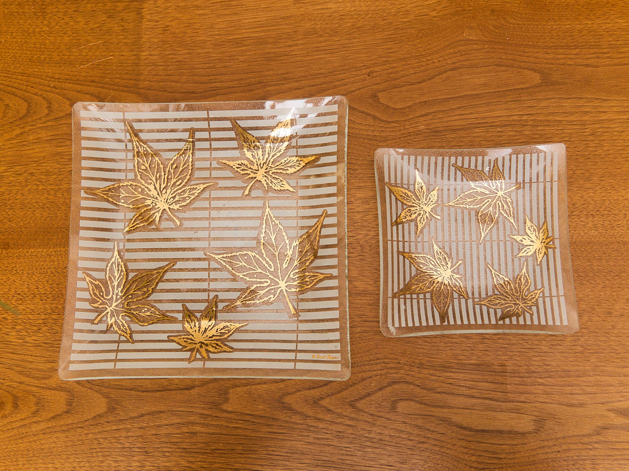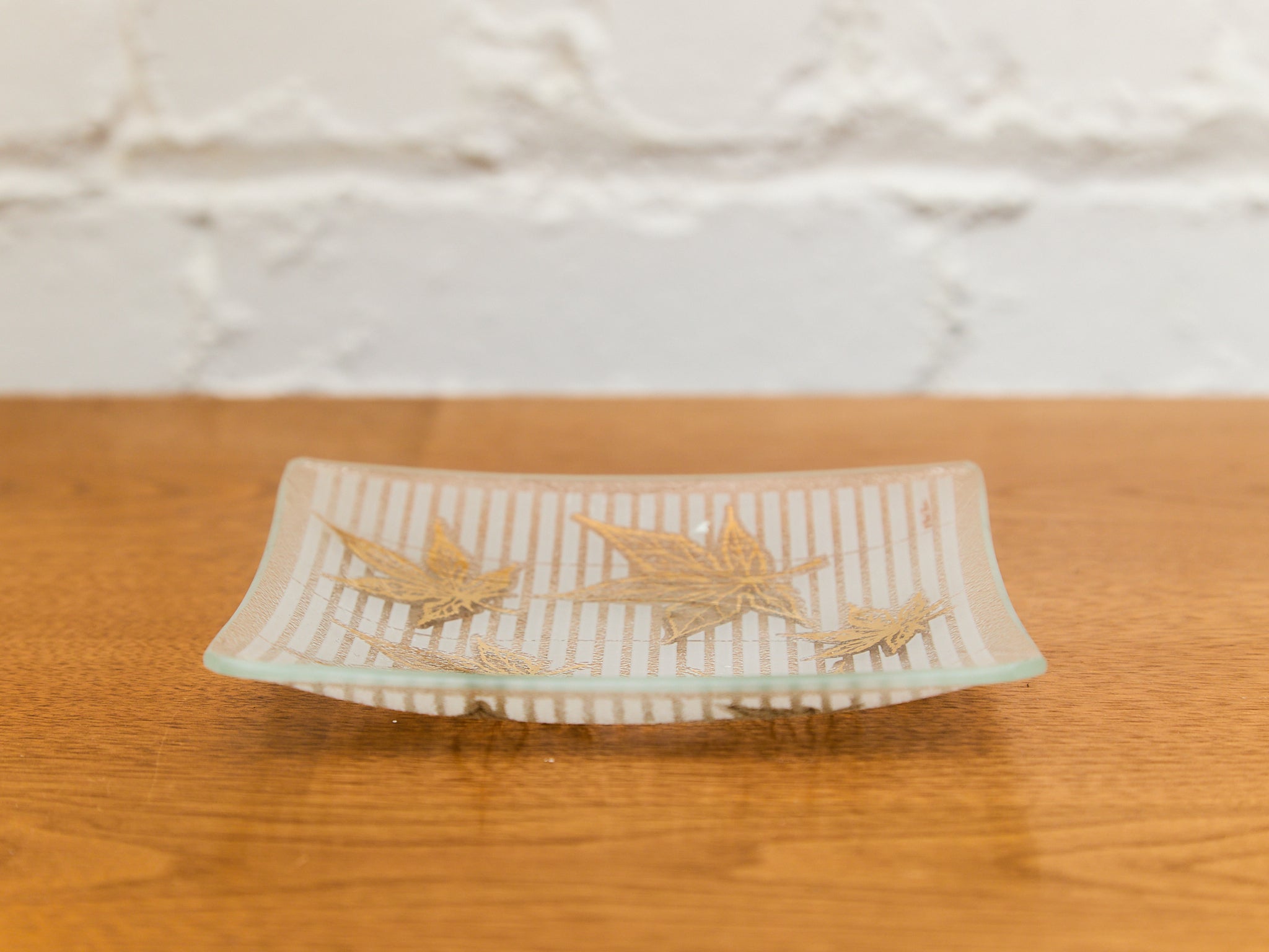 Small Vintage Fred Press Gold Leaf Glass Plate Dish