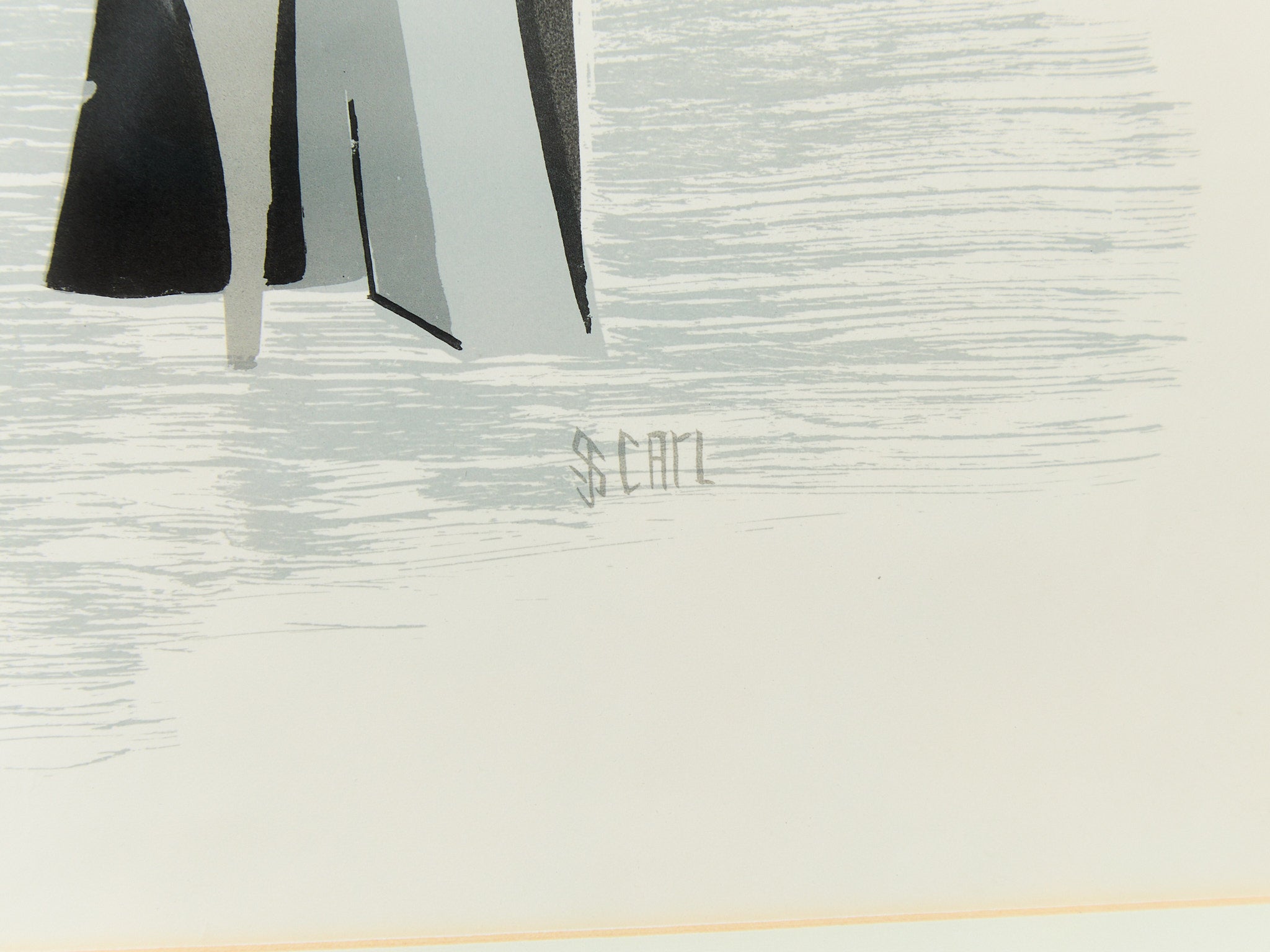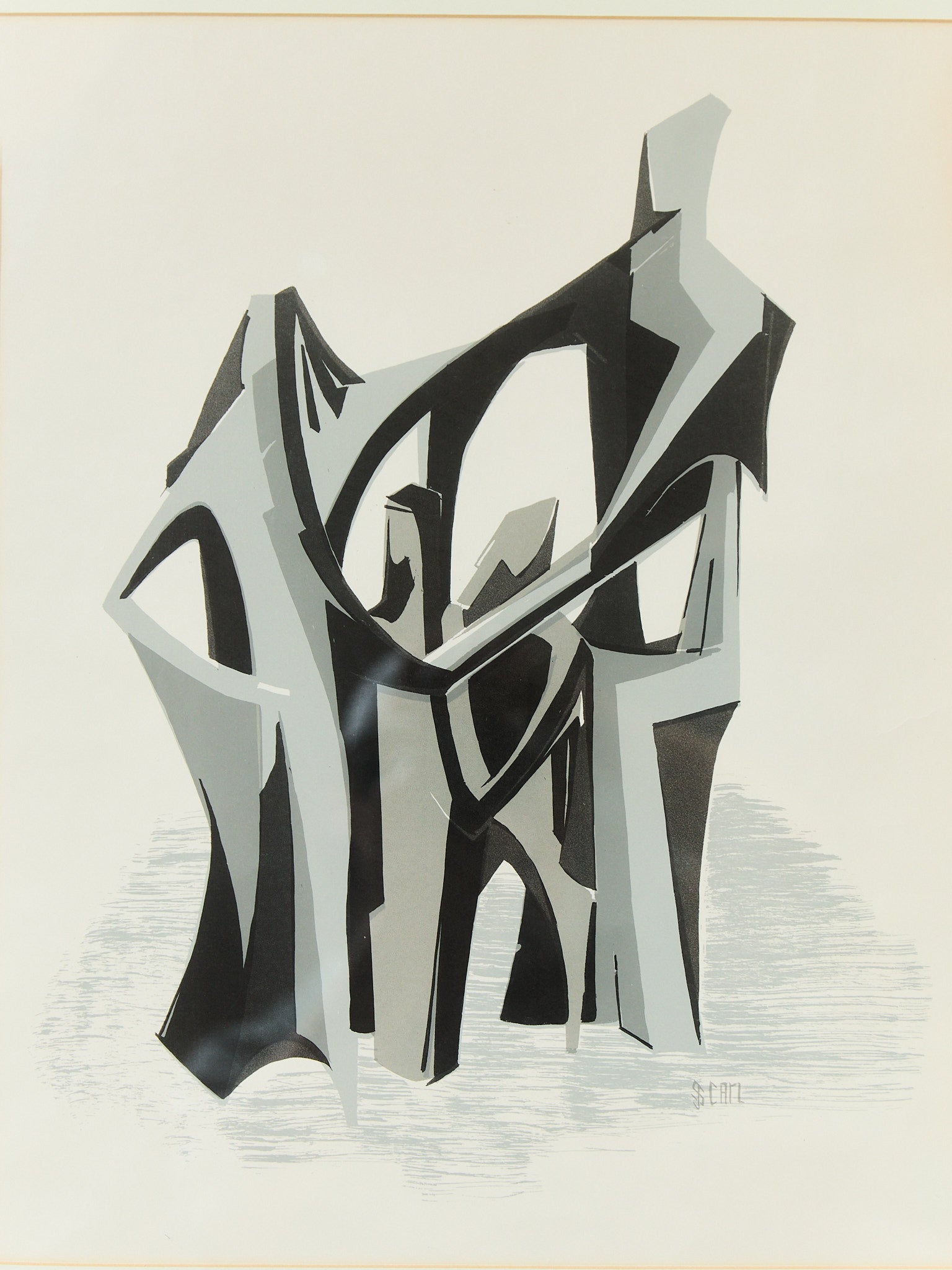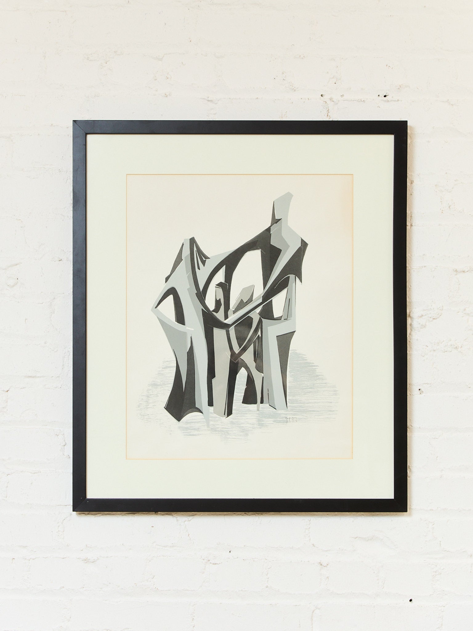 Abstract Figures, Mid-century, Modern Black, Gray, and White