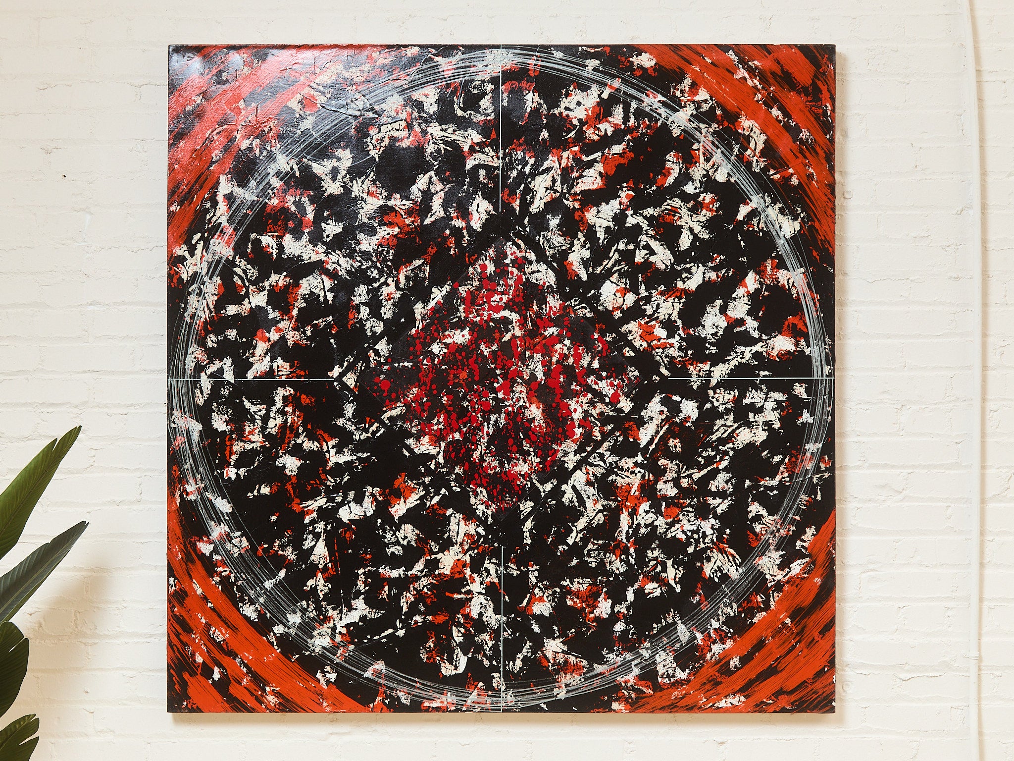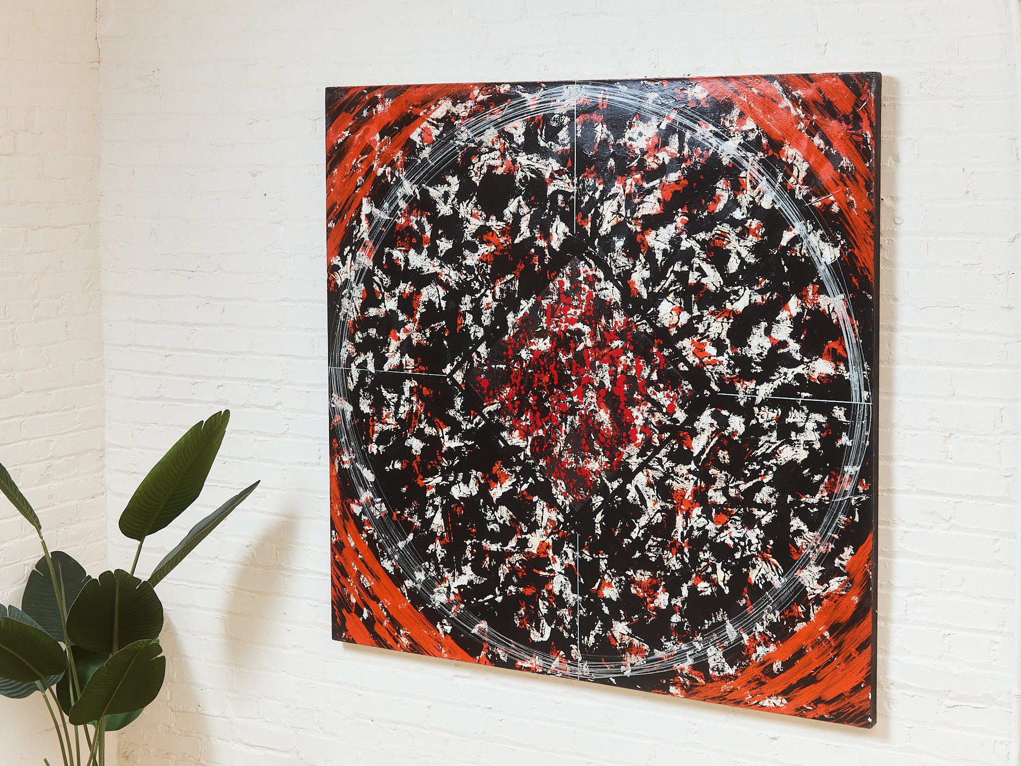 Red Geometric Acrylic Abstract Mandala Museum Painting in Red by Gerald Campbell