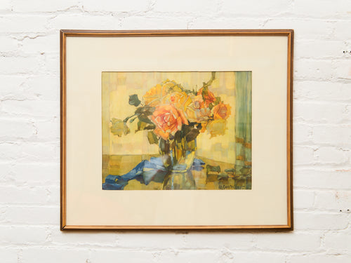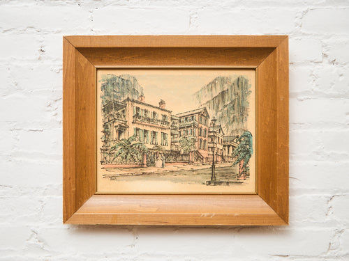 Post Modern Signed Lithograph Signed Pastel Landscape Mountains