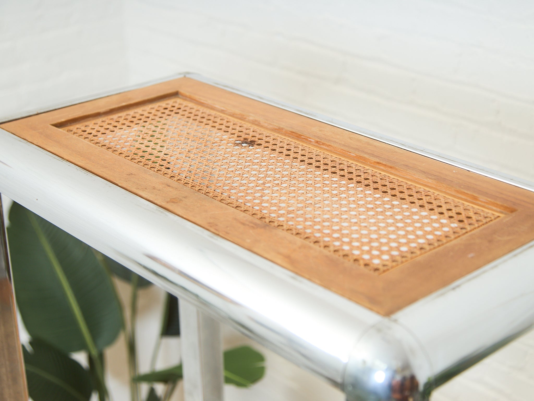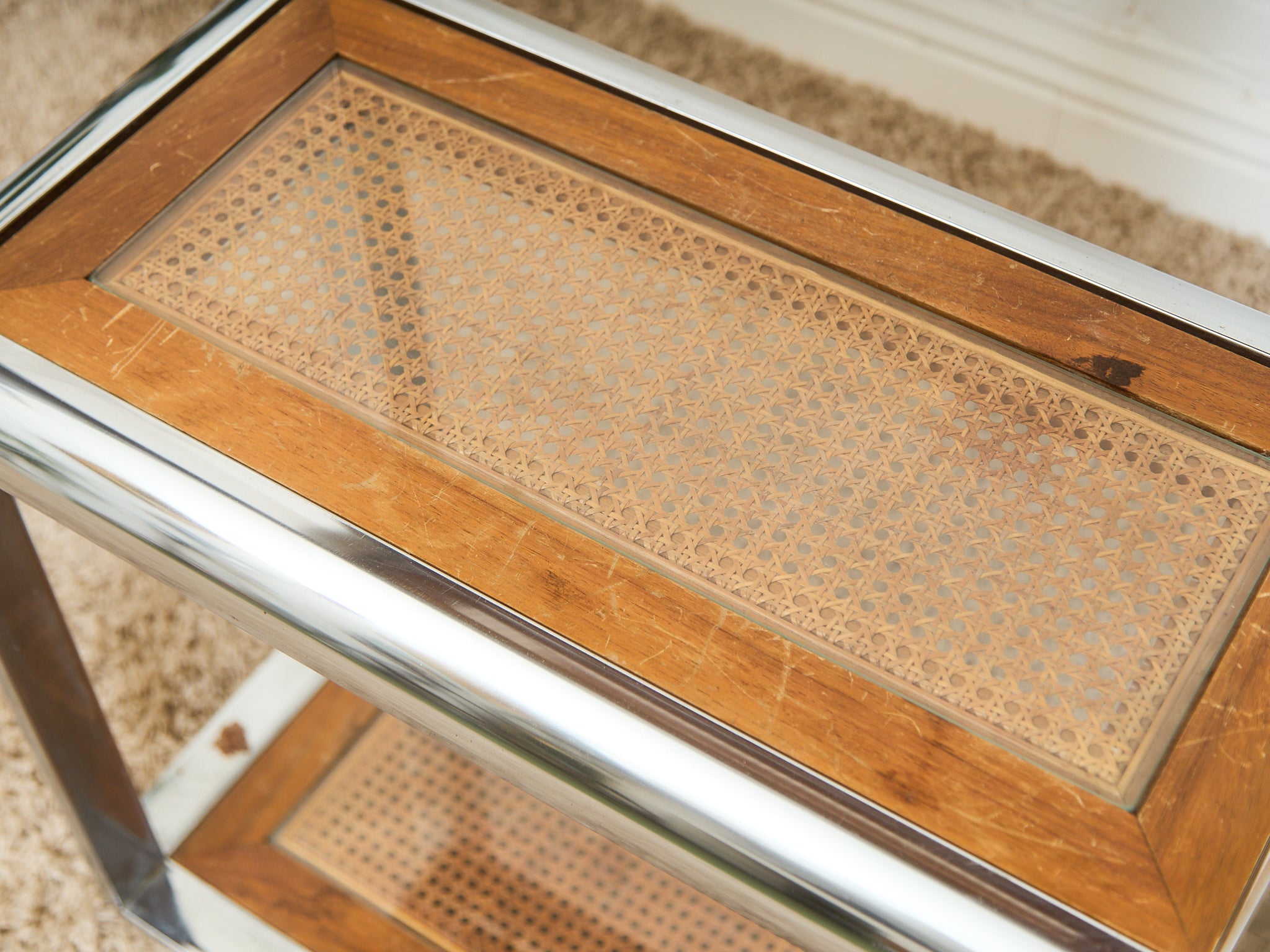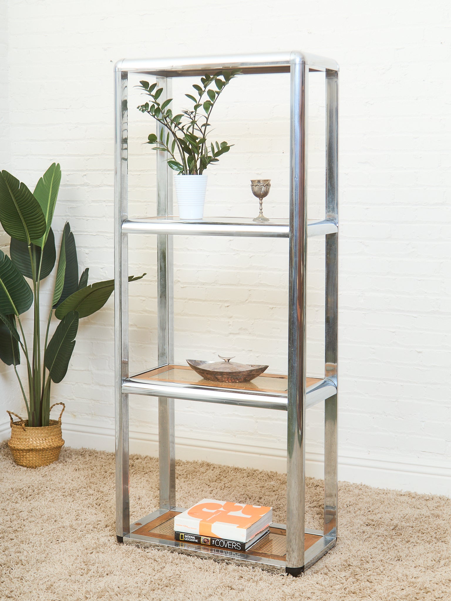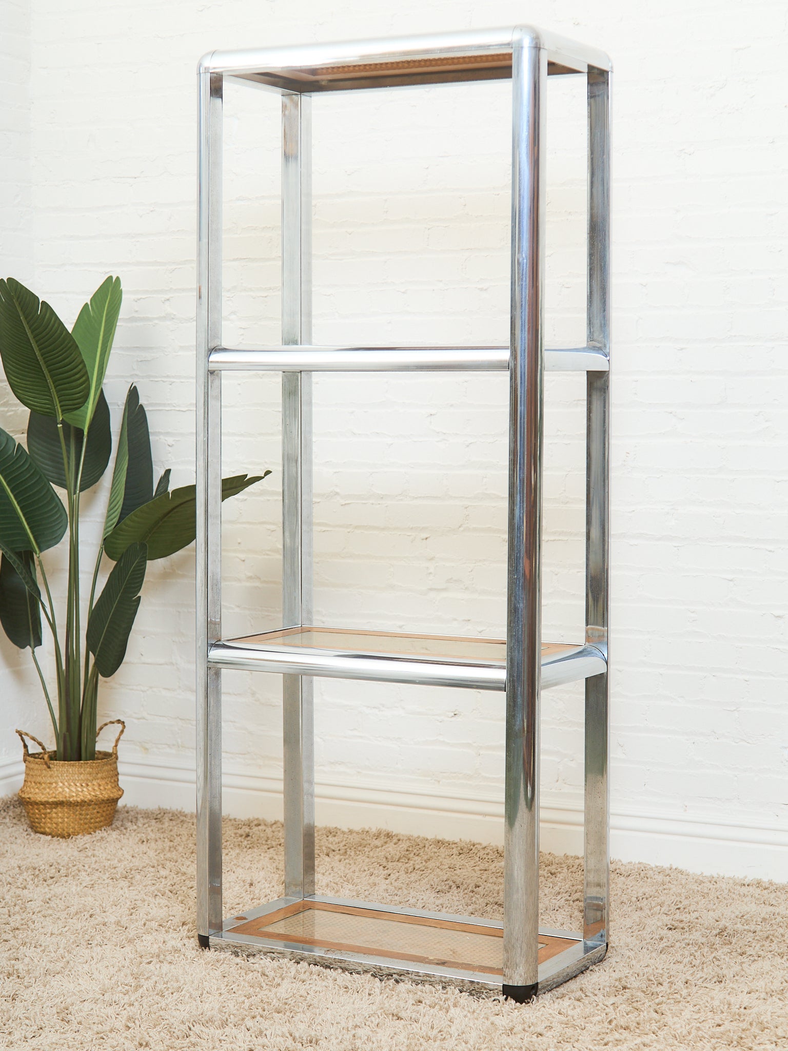 Milo Baughman Design Institute Tubular Chrome Caned Etagere Bookshelf Display