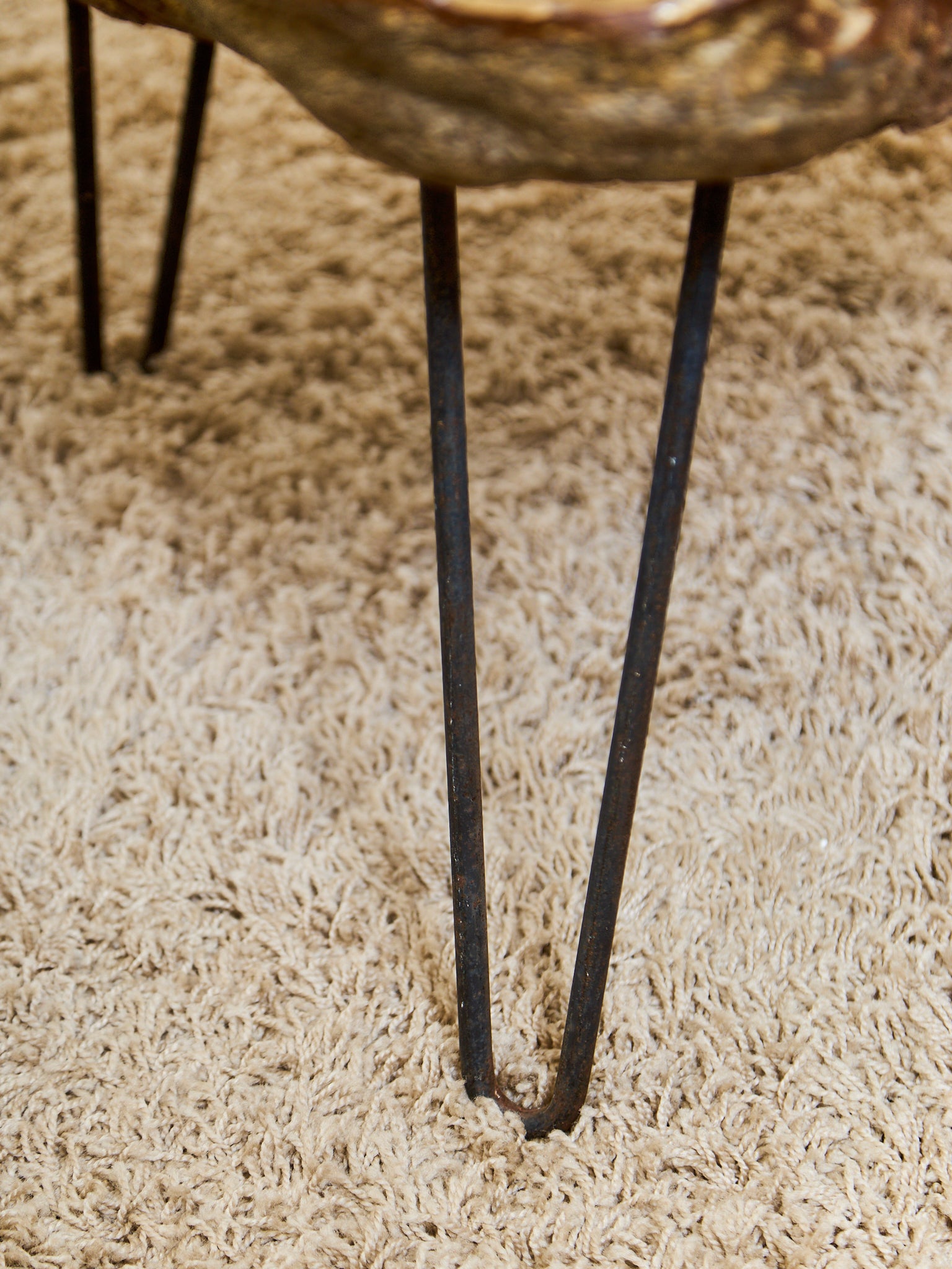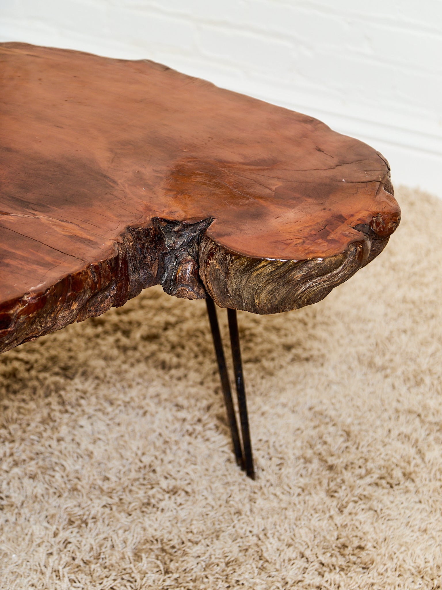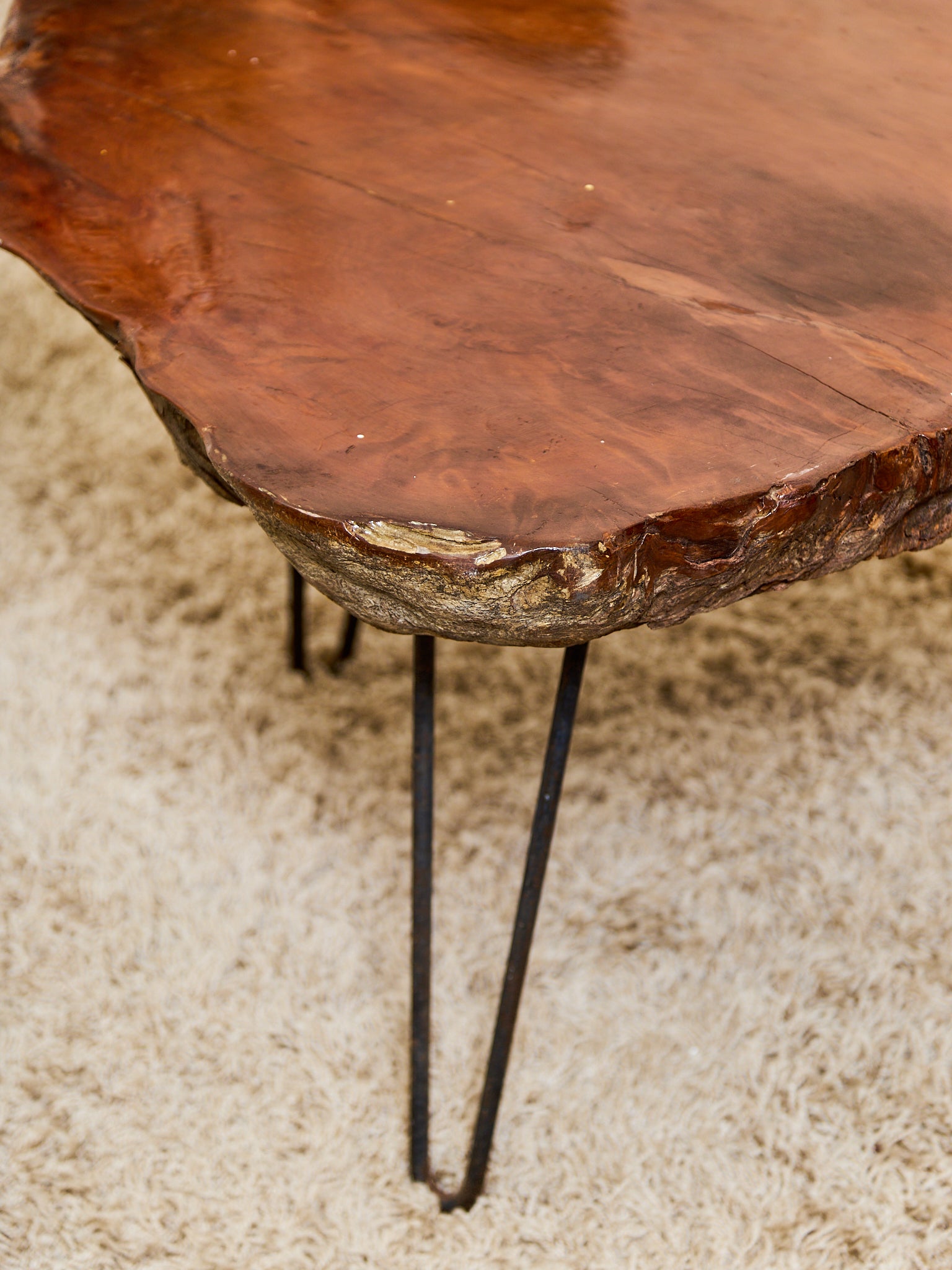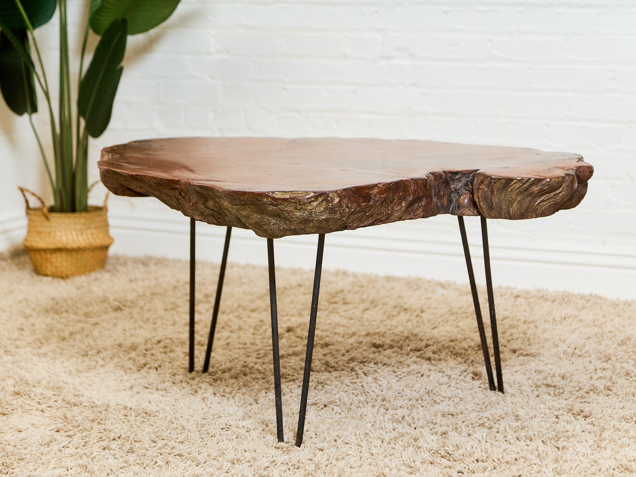 Organic Burl Slab Coffee Table with Hairpin Legs
