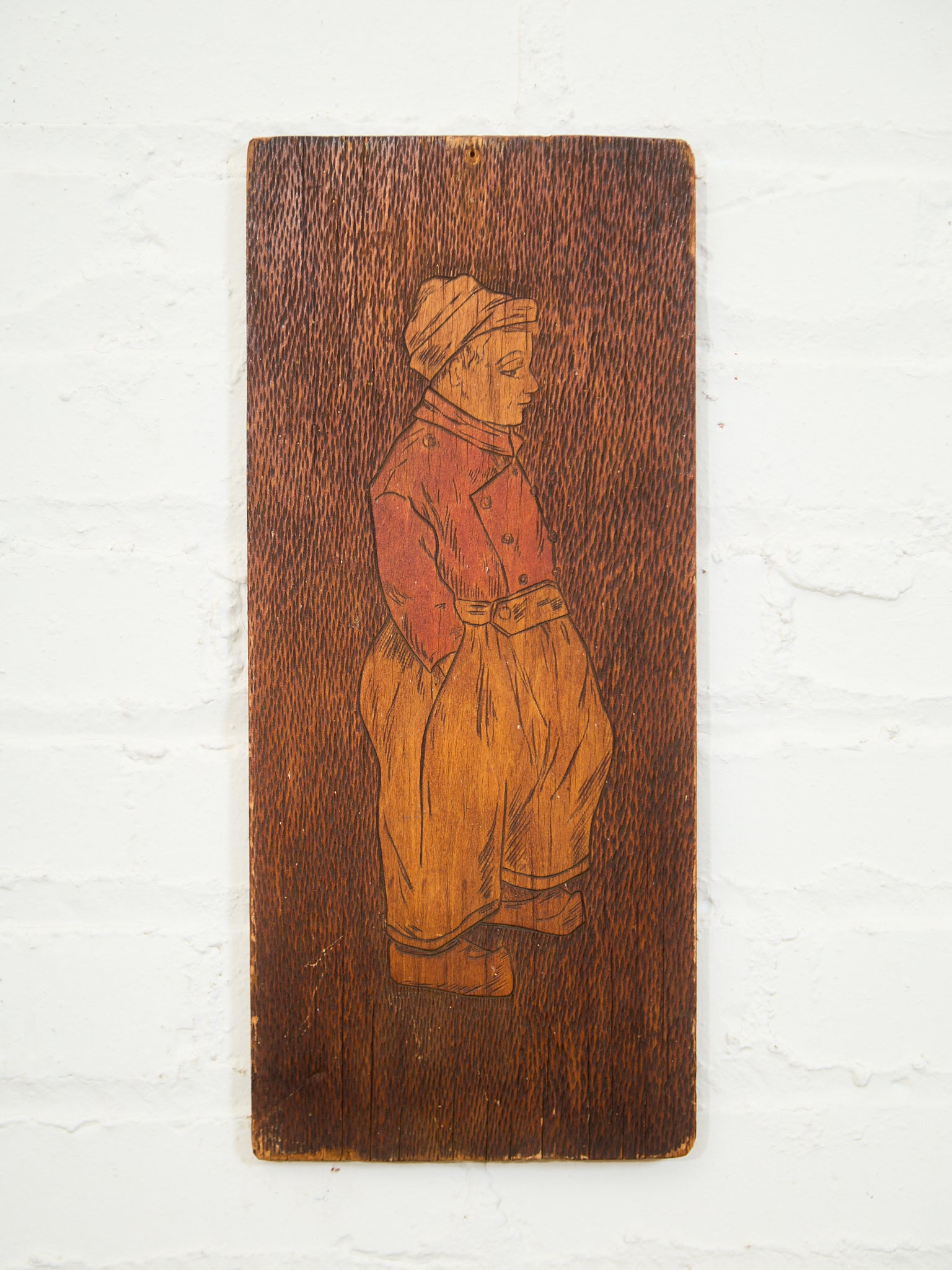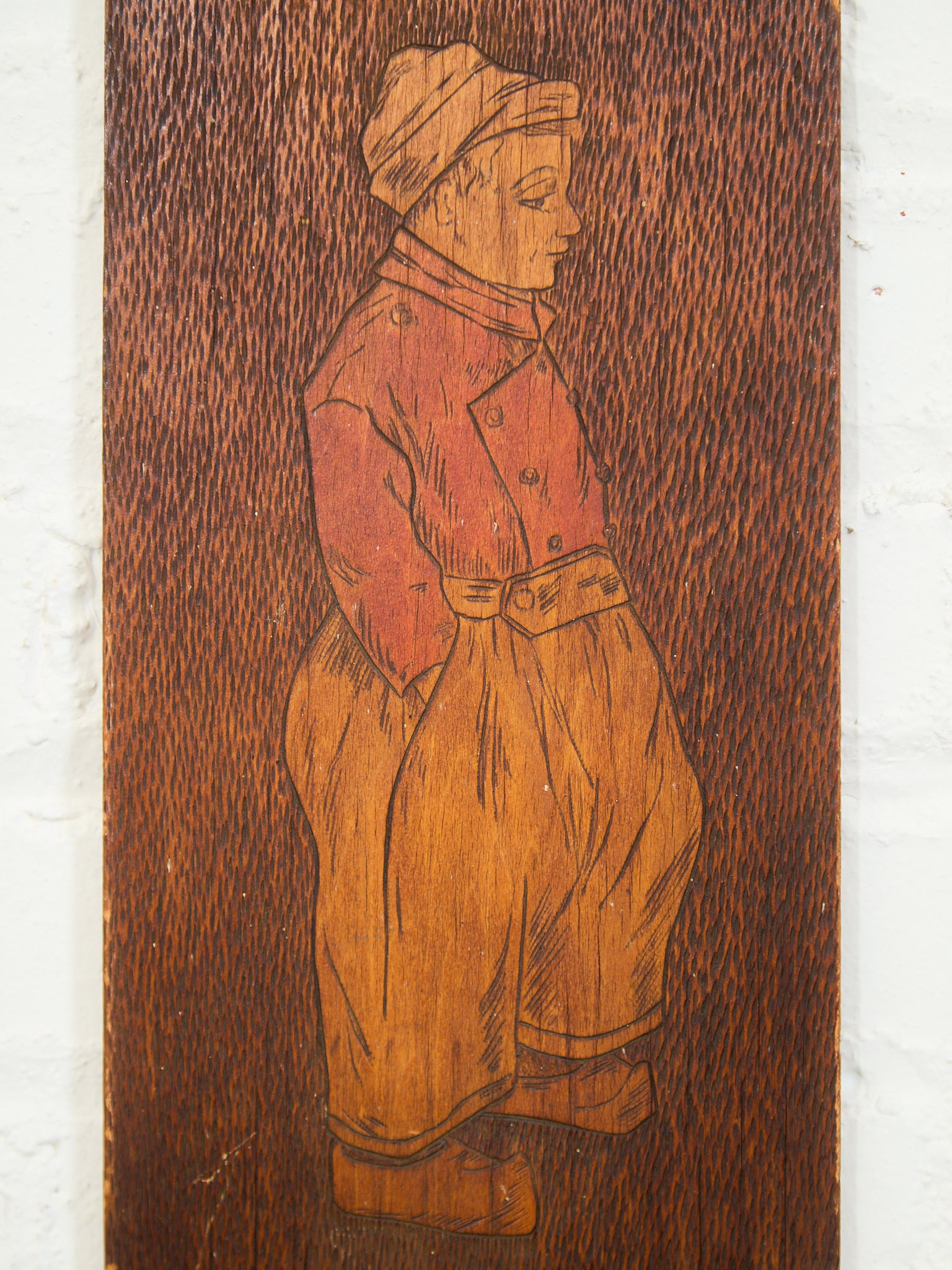 Vintage Man Hand Etched Wooden Pyrography Folk Art Plaque